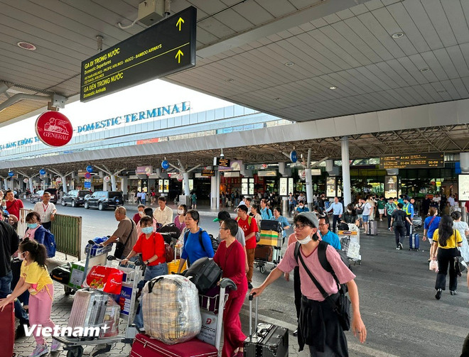 Hành khách đi lại bằng máy bay tại Cảng hàng không quốc tế Tân Sơn Nhất. (Ảnh: PV/Vietnam+)