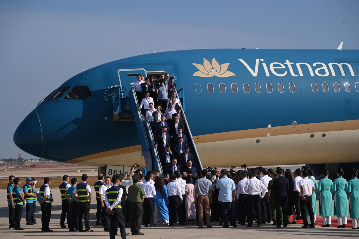 Lúc 8h20, máy bay Boeing 787 của Hãng hàng không quốc gia Việt Nam – Vietnam Airlines, chở theo lãnh đạo Đảng, Nhà nước, các Bộ, Ngành đáp xuống đường băng số 1, chính thức khai trương vận hành Cảng hàng không quốc tế Long Thành, đánh dấu mốc quan trọng của hàng không nước ta.