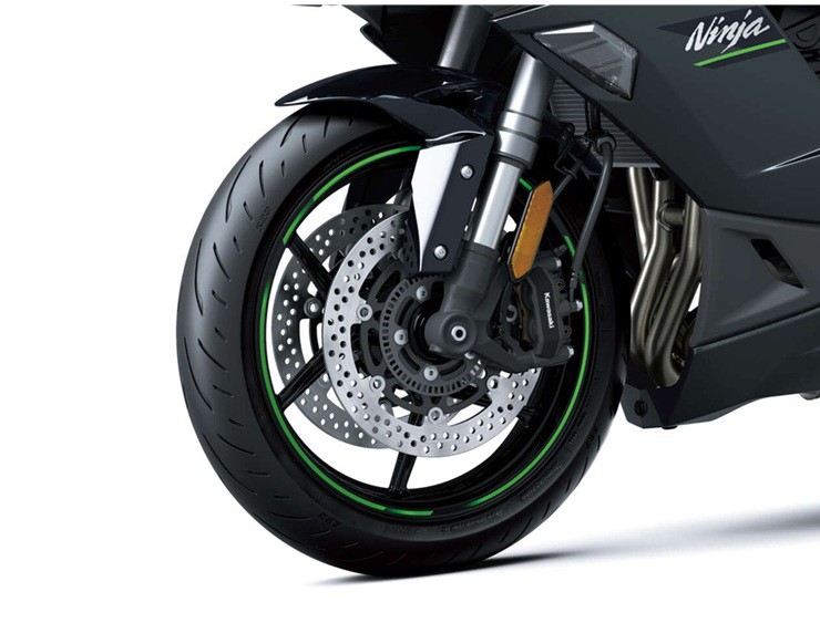 Đi kèm với đó là cụm đồng hồ TFT-LCD 4,3 inch, hỗ trợ kết nối smartphone bằng lệnh giọng nói thông qua ứng dụng Rideology của Kawasaki. Xe sử dụng bộ vành 17 inch cho cả phía trước và sau cùng lốp không săm có kích thước trước/sau lần lượt là 120/70 và 190/50.