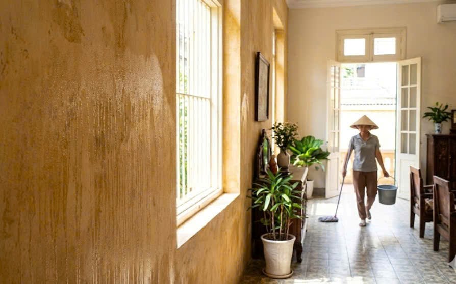 Ngoài ra, nhiều gia đình còn dùng báo cũ dán tường, bìa lót sàn ở khu vực ẩm để thấm nước, giúp bề mặt khô nhanh hơn.