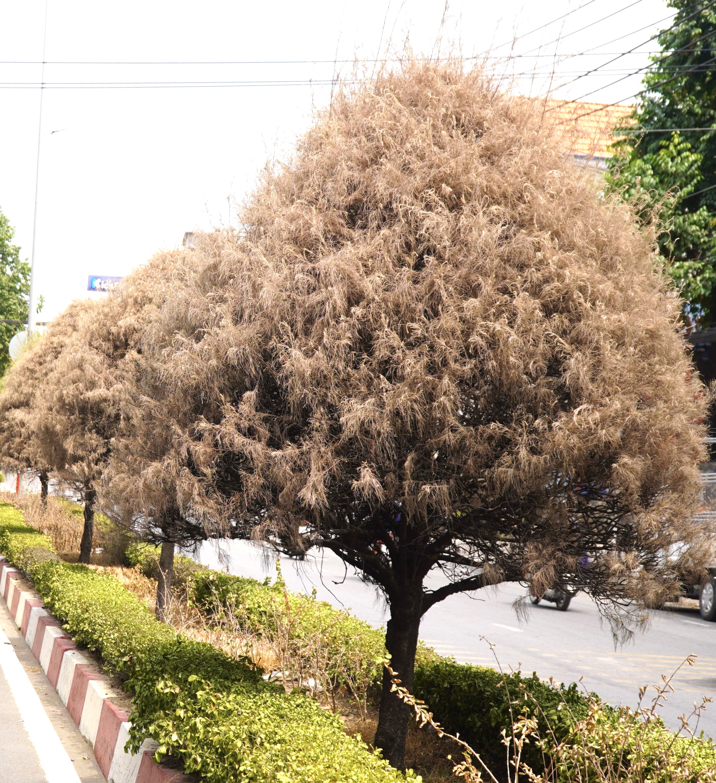 Hàng Tùng Dương (cây Phi Lao) được trồng giữa dải phân cách đường Đồng khởi đoạn gần ngã 3 Đồng Khởi đến khu vực cây xăng 26 giáp ranh 2 phường Trảng Dài và Tân Triều bất ngờ chết khô.