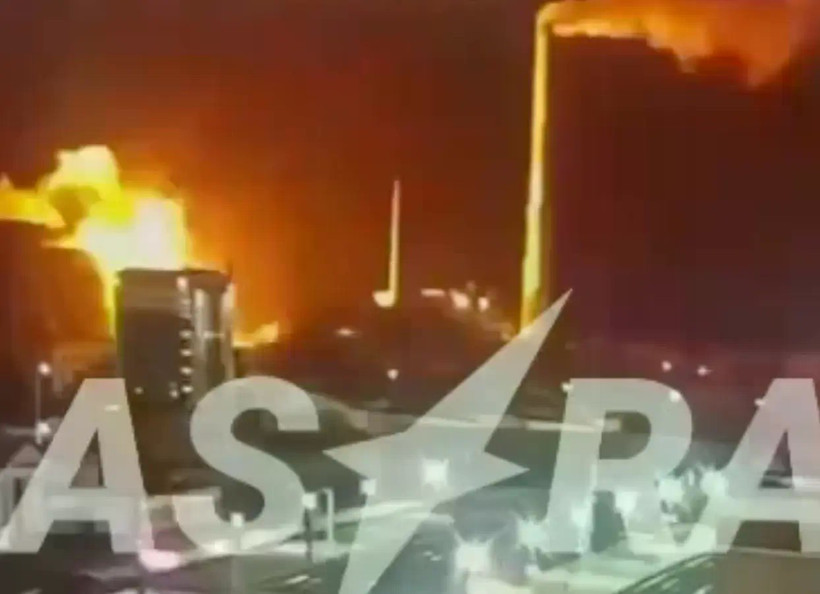 Ảnh chụp màn hình từ một video được cho là ghi lại cảnh nổ tại nhà máy nhiệt điện kết hợp Oryol. (Nguồn: Astra)