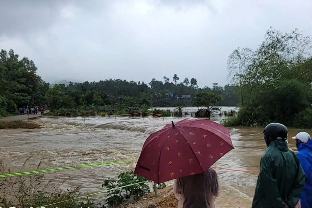 Một vị trí tại xã Tiên Hiệp cũ nước tràn qua đường, giao thông chia cắt.