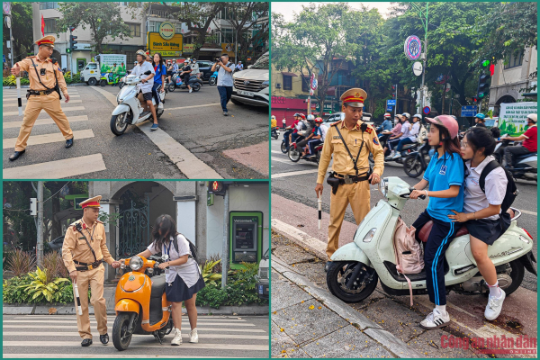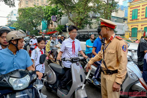 Trung tá Trần Quang Chinh (Phó Đội trưởng Đội CSGT số 1) cho biết, hiện lực lượng Công an TP Hà Nội đang triển khai rất quyết liệt đợt cao điểm tuyên truyền, kiểm tra, xử lý vi phạm đối với học sinh và phụ huynh trên địa bàn thành phố với nhiều hành vi như: điều khiển xe không có giấy phép lái xe; không đội mũ bảo hiểm; chở quá số người quy định; không chấp hành hiệu lệnh đèn tín hiệu giao thông; chạy dàn hàng ngang; đi ngược chiều của đường một chiều; bấm còi, rú ga; điều khiển xe chạy bằng một bánh đối với xe hai bánh; sử dụng chân chống hoặc vật khác quệt xuống đường khi xe đang chạy; lạng lách, đánh võng; tụ tập gây rối trật tự công cộng, đua xe trái phép; giao phương tiện cho người chưa đủ điều kiện điều khiển; dừng, đỗ xe, để xe dưới lòng đường, vỉa hè trái quy định.
