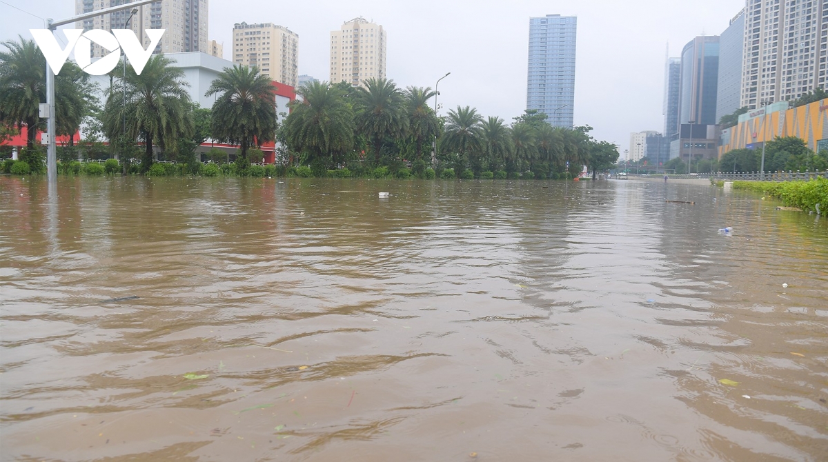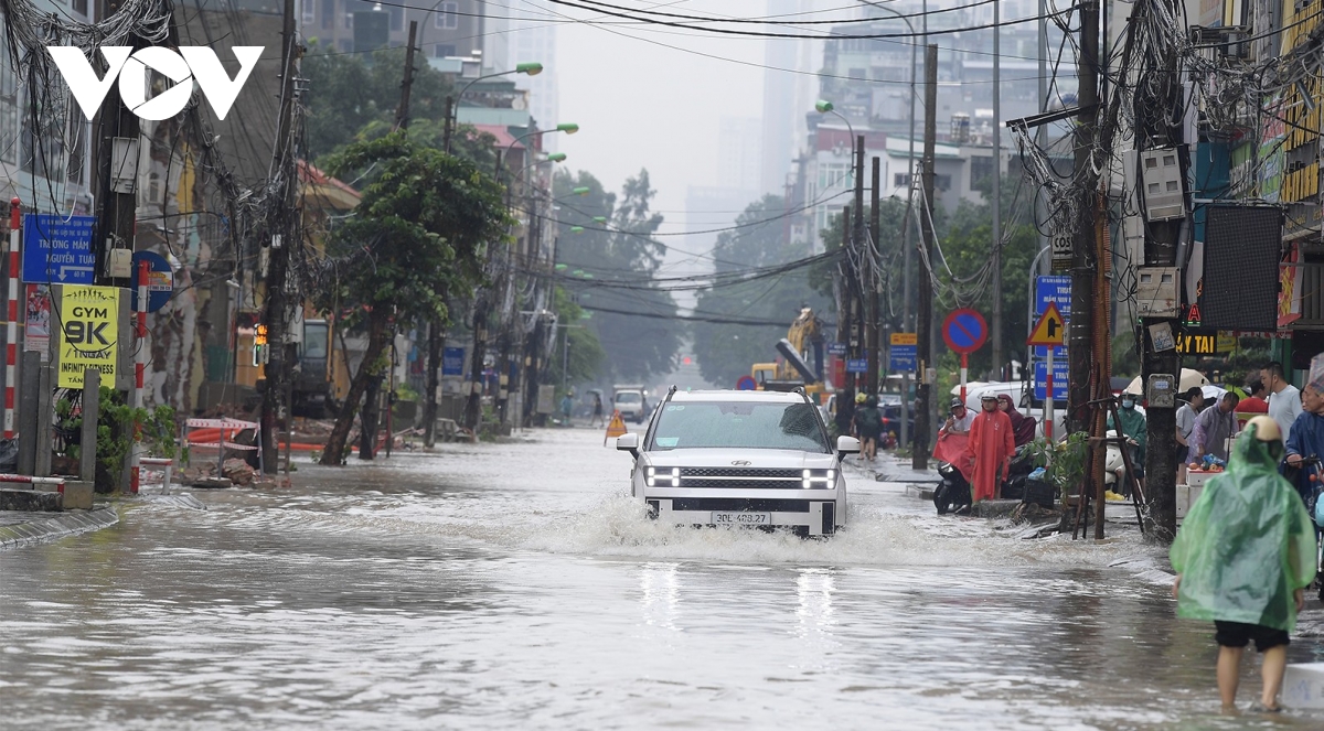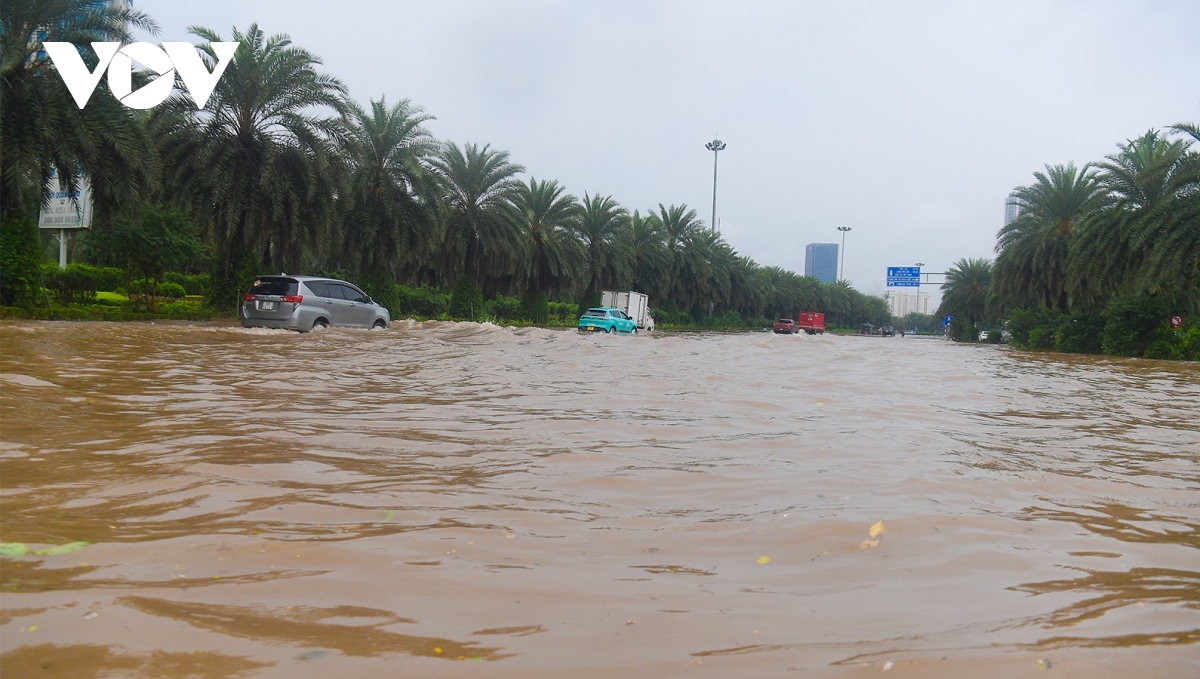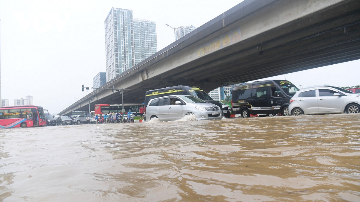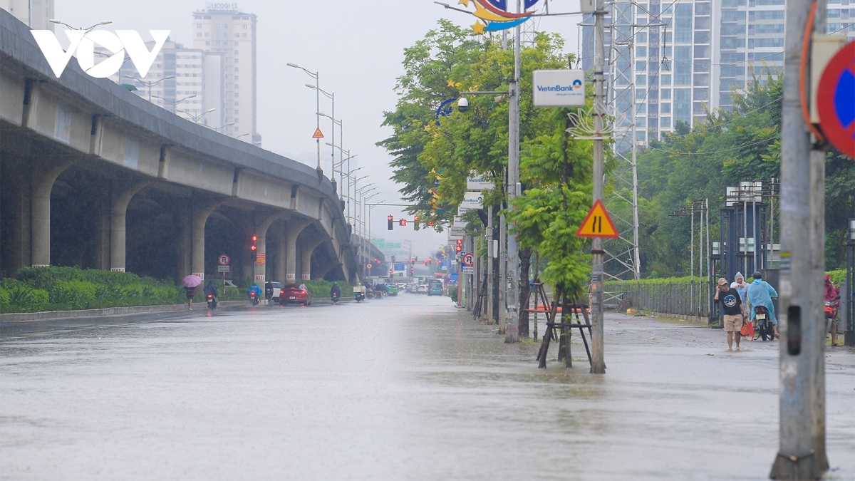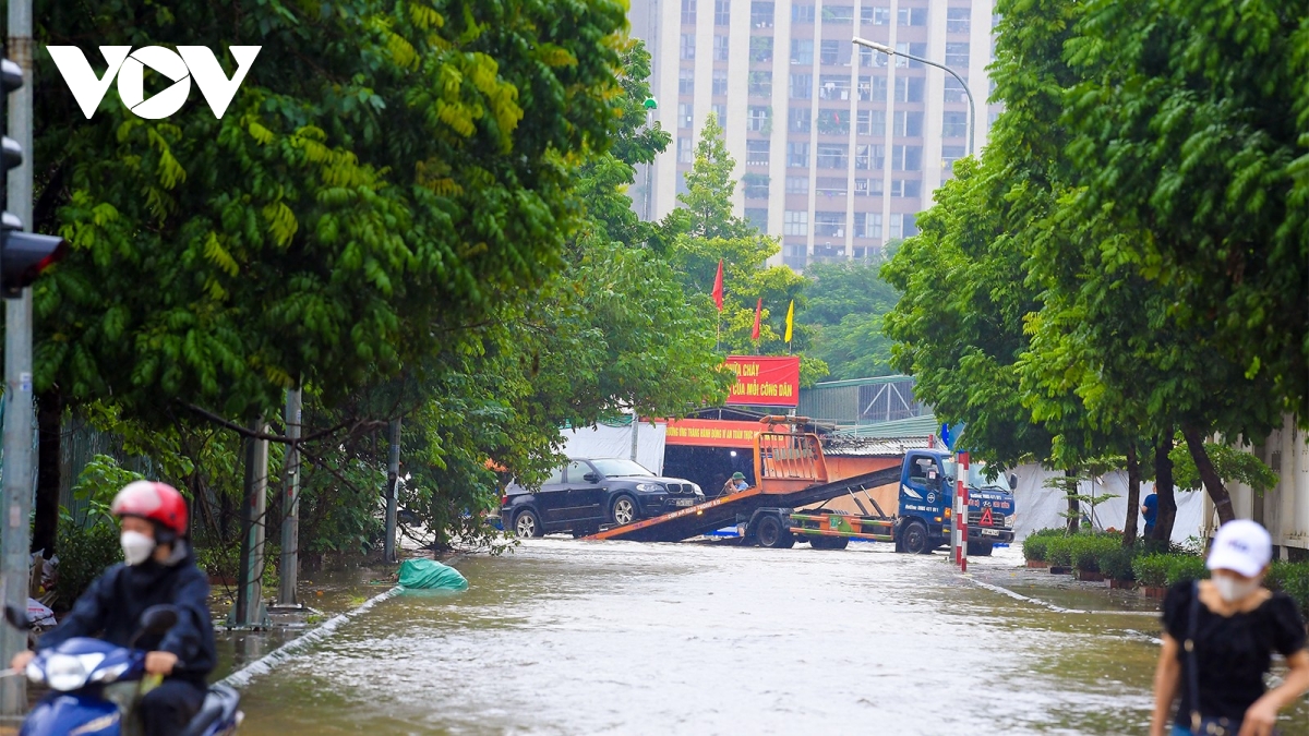 Ghi nhận tại hàng loạt tuyến phố lớn như Nguyễn Trãi, Đại lộ Thăng Long - Trần Duy Hưng - Nguyễn Chí Thanh, dọc tuyến Vành đai 3, Phạm Tu - Xa La, Văn Quán, Lê Văn Lương - Tố Hữu...ngập sâu, giao thông ách tắc, thậm chí có đoạn bị chia cắt.