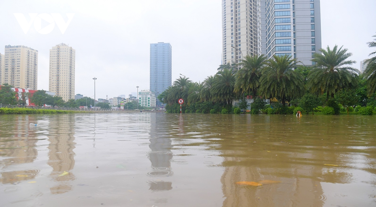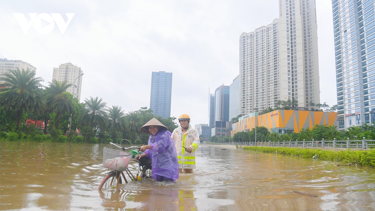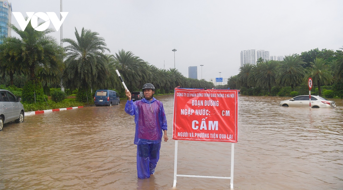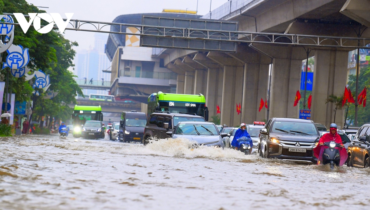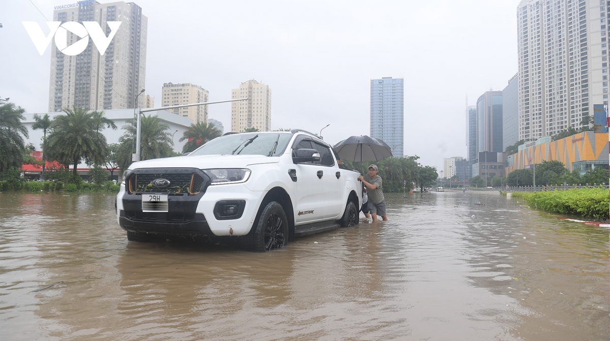 Ghi nhận tại hàng loạt tuyến phố lớn như Nguyễn Trãi, Đại lộ Thăng Long - Trần Duy Hưng - Nguyễn Chí Thanh, dọc tuyến Vành đai 3, Phạm Tu - Xa La, Văn Quán, Lê Văn Lương - Tố Hữu...ngập sâu, giao thông ách tắc, thậm chí có đoạn bị chia cắt.