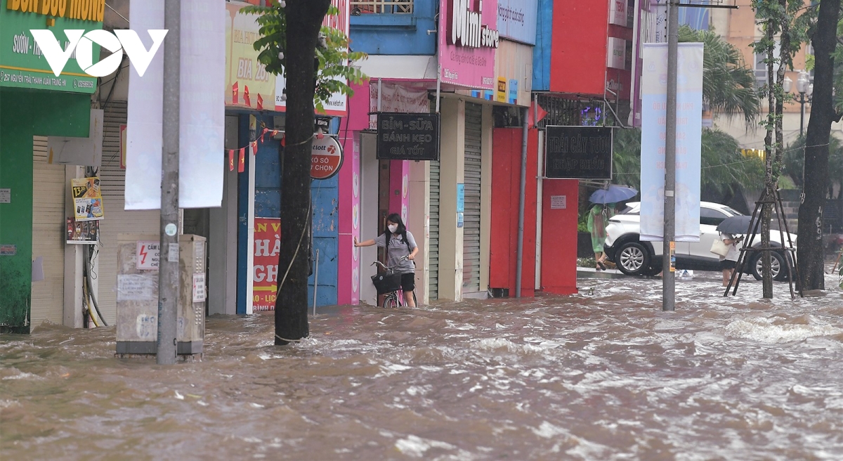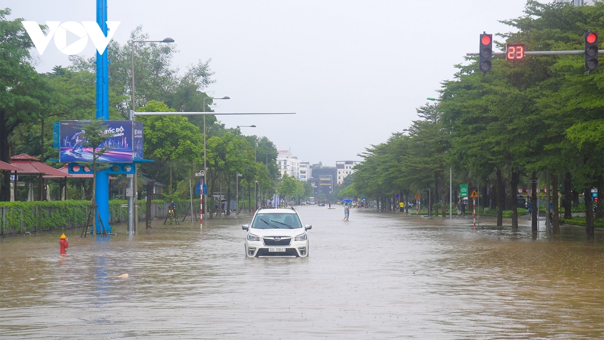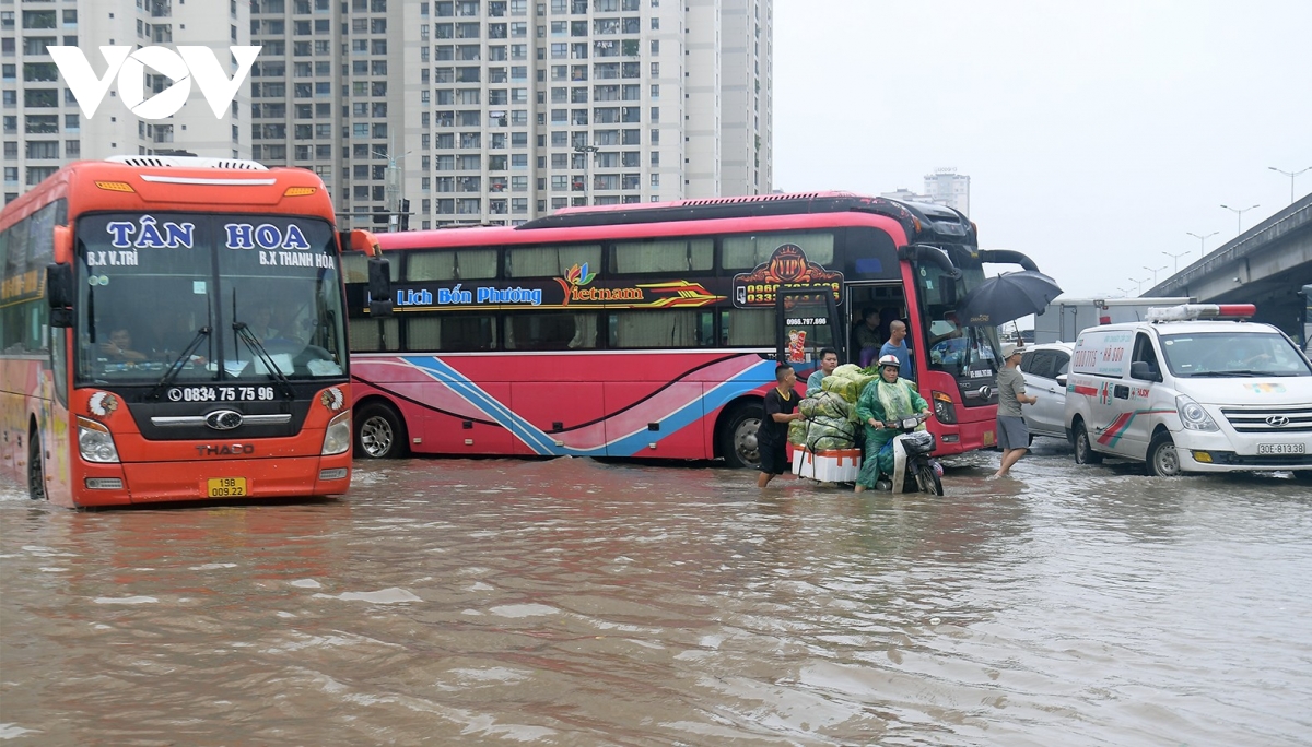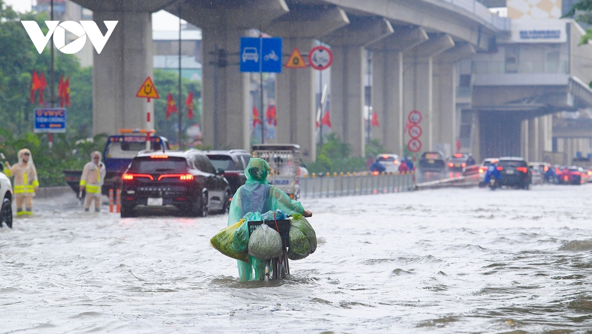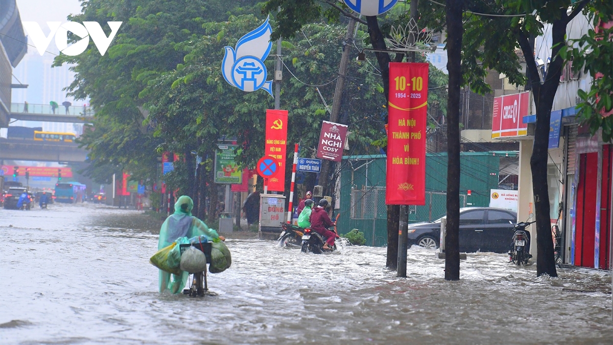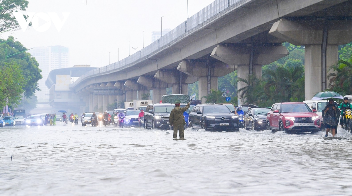 Ghi nhận tại hàng loạt tuyến phố lớn như Nguyễn Trãi, Đại lộ Thăng Long - Trần Duy Hưng - Nguyễn Chí Thanh, dọc tuyến Vành đai 3, Phạm Tu - Xa La, Văn Quán, Lê Văn Lương - Tố Hữu...ngập sâu, giao thông ách tắc, thậm chí có đoạn bị chia cắt.