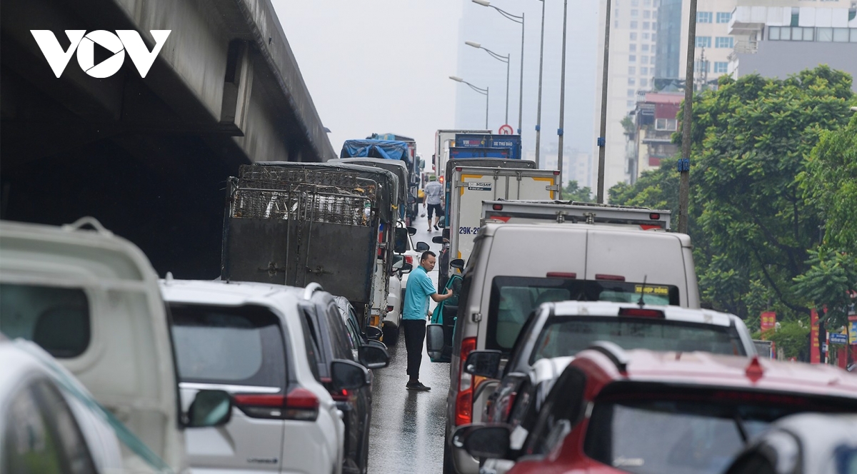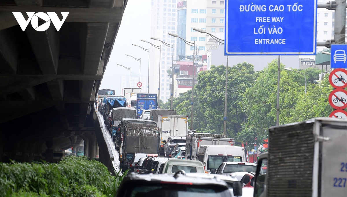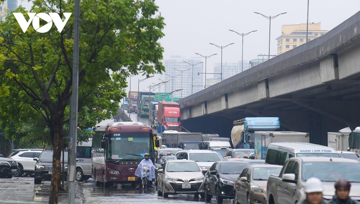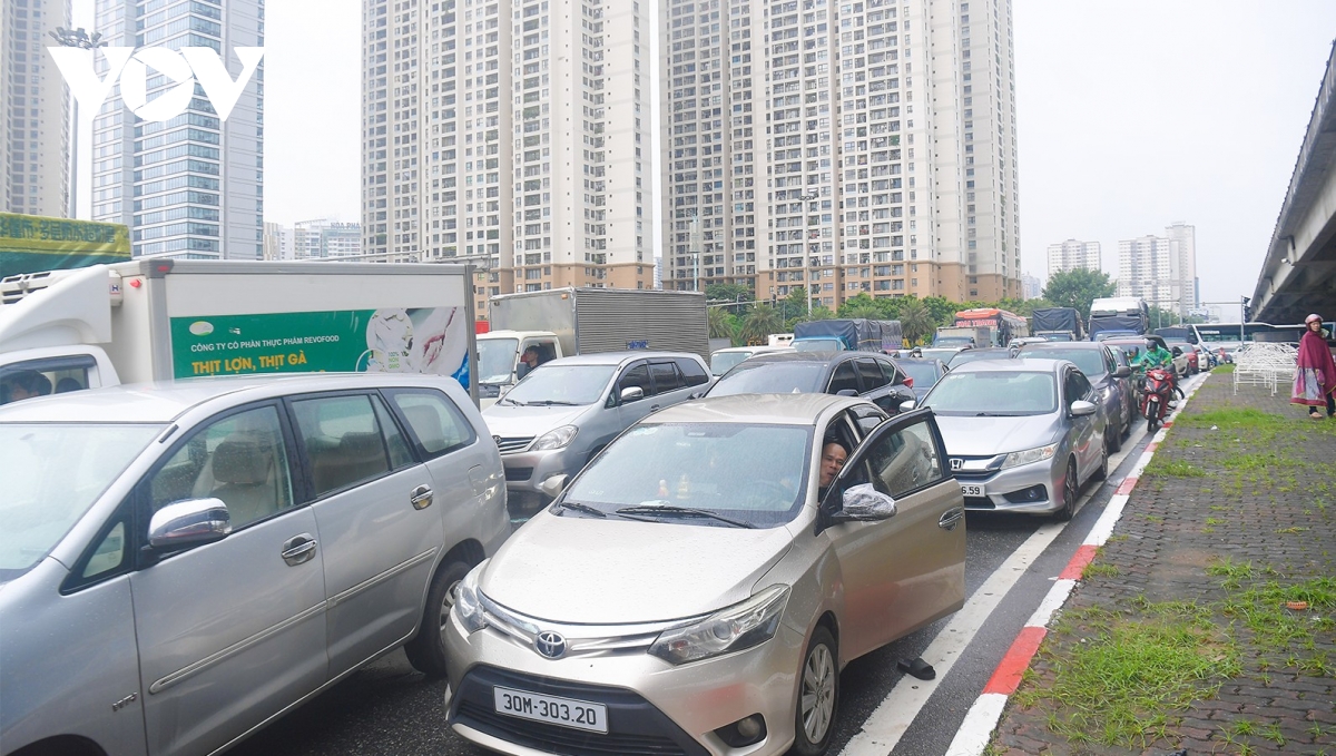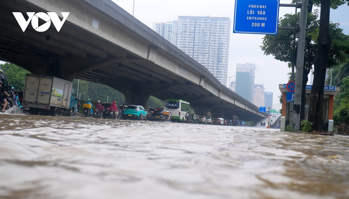 Tại tuyến đường Vành đai 3 ngập cả trên cao và dưới thấp khiến nhiều vị trí bị ùn tắc kéo dài.