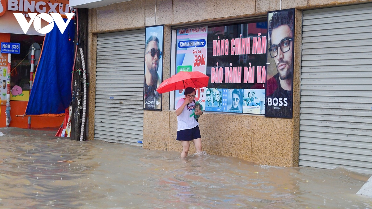 ...nhiều tuyến phố ở nội đô vẫn ngập sâu.