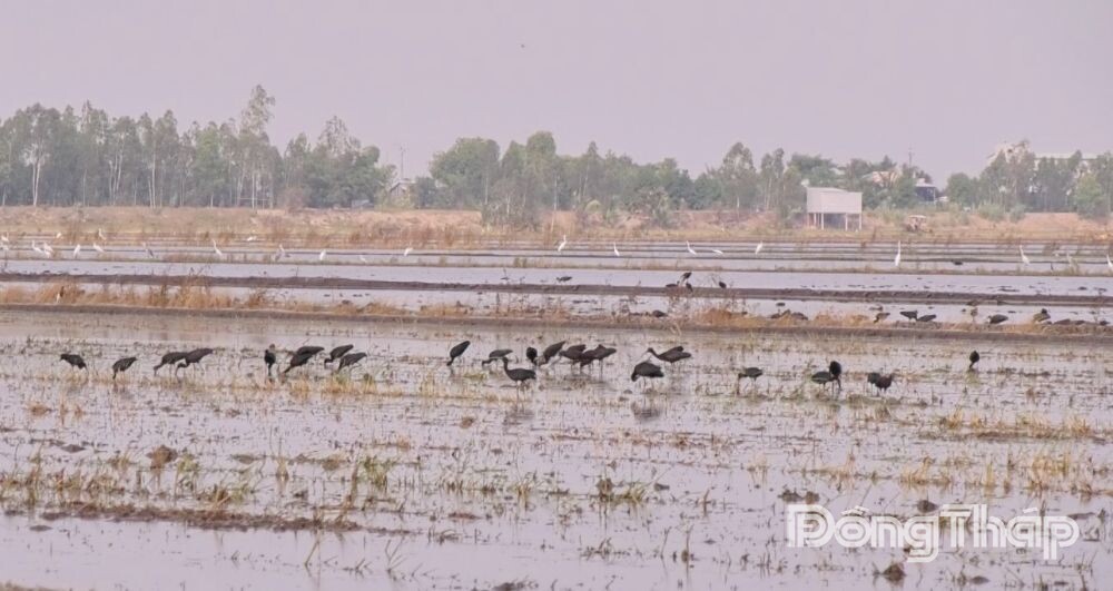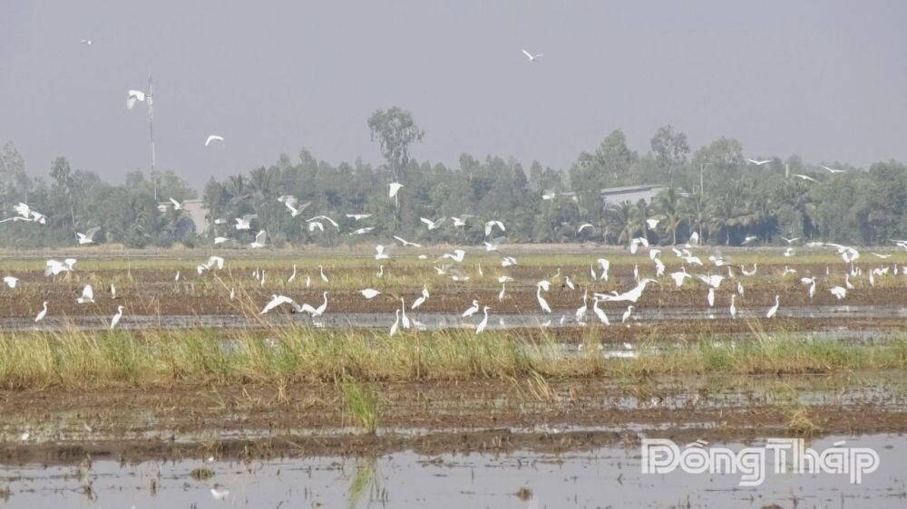Theo người dân địa phương, thời điểm này nông dân đang chuẩn bị xuống giống vụ lúa hè thu, tiến hành đưa nước vào ruộng để làm đất. Điều kiện thuận lợi này đã thu hút nhiều loài chim, cò từ khu vực Vườn Quốc gia (VQG) Tràm Chim bay về kiếm ăn.