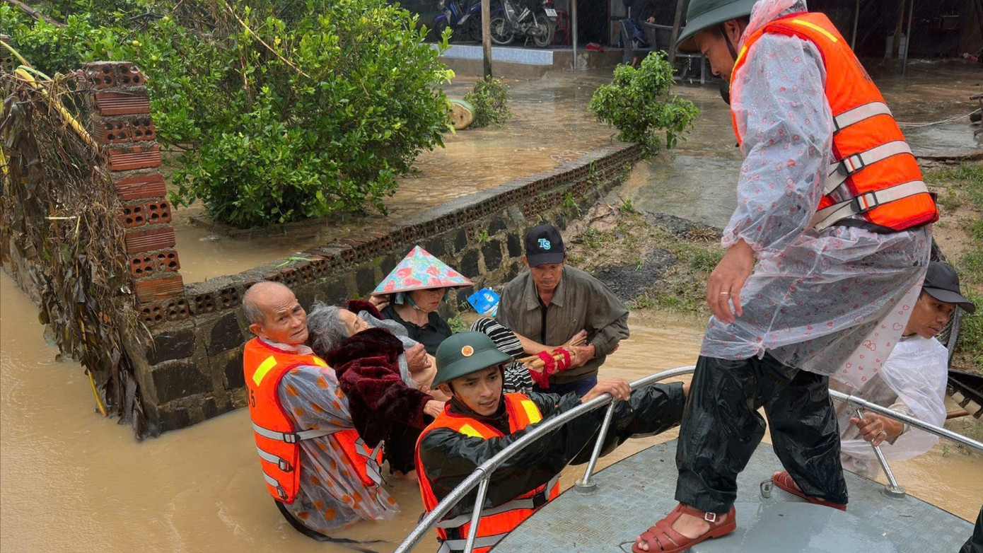 Tổ công tác của Lữ đoàn 572 tiếp cận nhà cụ Nguyễn Thị Mười (89 tuổi, thôn Long Uyên) người bị té ngã gãy chân khi lũ dâng. Các chiến sĩ đã kịp thời sơ cứu, cố định vết thương và đưa cụ lên ca nô vượt lũ đến bệnh viện. Nhờ sự hỗ trợ tận tình, cụ Mười đã được chuyển viện an toàn và đang được theo dõi, điều trị.