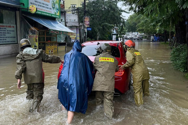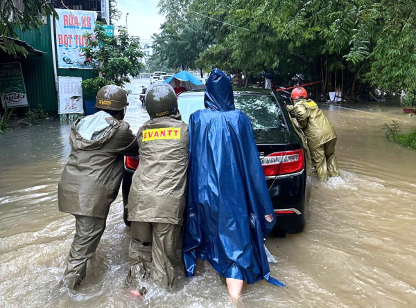 Thực hiện ý kiến chỉ đạo của Ban Giám đốc Công an TP Huế, Phòng CSGT Công an thành phố đã huy động lực lượng, phương tiện phối hợp với Công an địa bàn cơ sở để túc trực, chốt chặn, đảm bảo ATGT tại các điểm ngập. Đồng thời sử dụng phương tiện chuyên dụng để di dời, hỗ trợ người dân đi qua các điểm ngập lụt an toàn. Trên các tuyến huyết mạch, lực lượng CSGT bám đường, điều tiết, hướng dẫn các phương tiện lưu thông an toàn, tránh các vực sâu, điểm ngập nguy hiểm, đồng thời khẩn trương cưa dọn cây xanh gãy đổ, giải phóng chướng ngại vật để giữ thông suốt cho các phương tiện làm nhiệm vụ khẩn cấp.