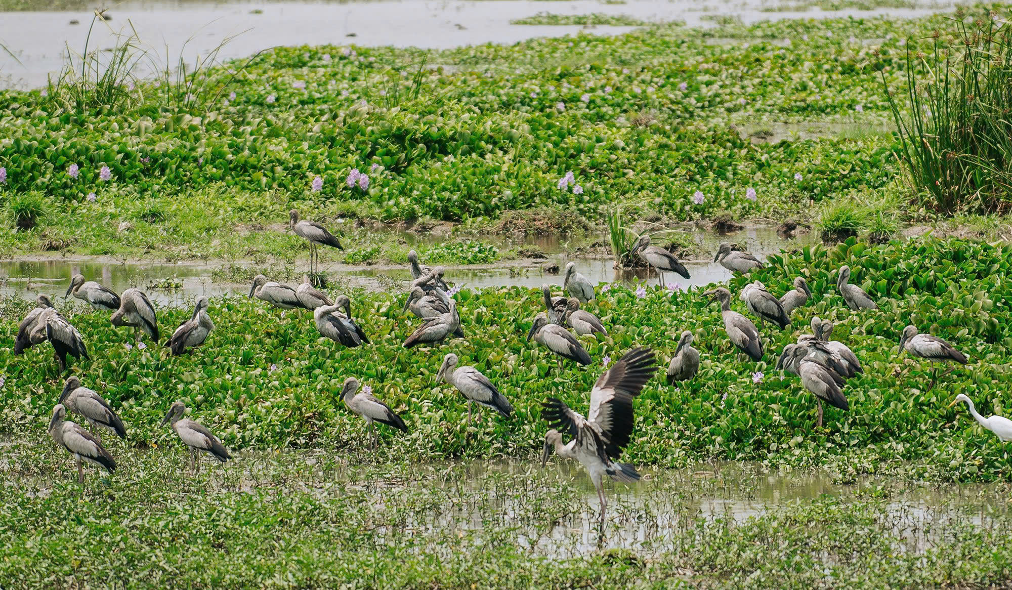 Đàn cò tập trung kiếm ăn. Ảnh: T.Q