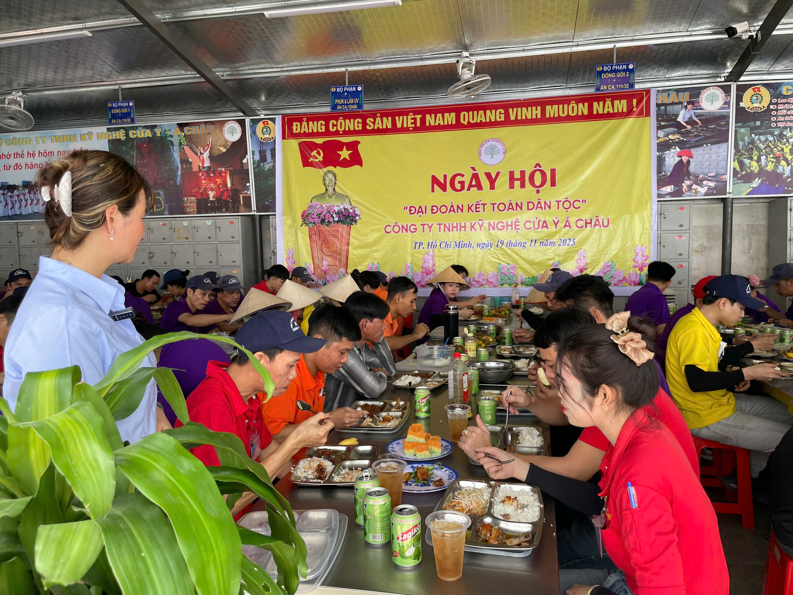 Theo bà Lê Thị Hương, Chủ tịch CĐCS Công ty TNHH Kỹ nghệ Cửa Ý Á Châu, chào mừng 95 năm Ngày thành lập Mặt trận Dân tộc thống nhất - Ngày truyền thống MTTQ Việt Nam, “Bữa cơm đại đoàn kết dân tộc” của công ty là dịp để lãnh đạo doanh nghiệp, công đoàn cùng đoàn viên lao động được gặp gỡ, chuyện trò.