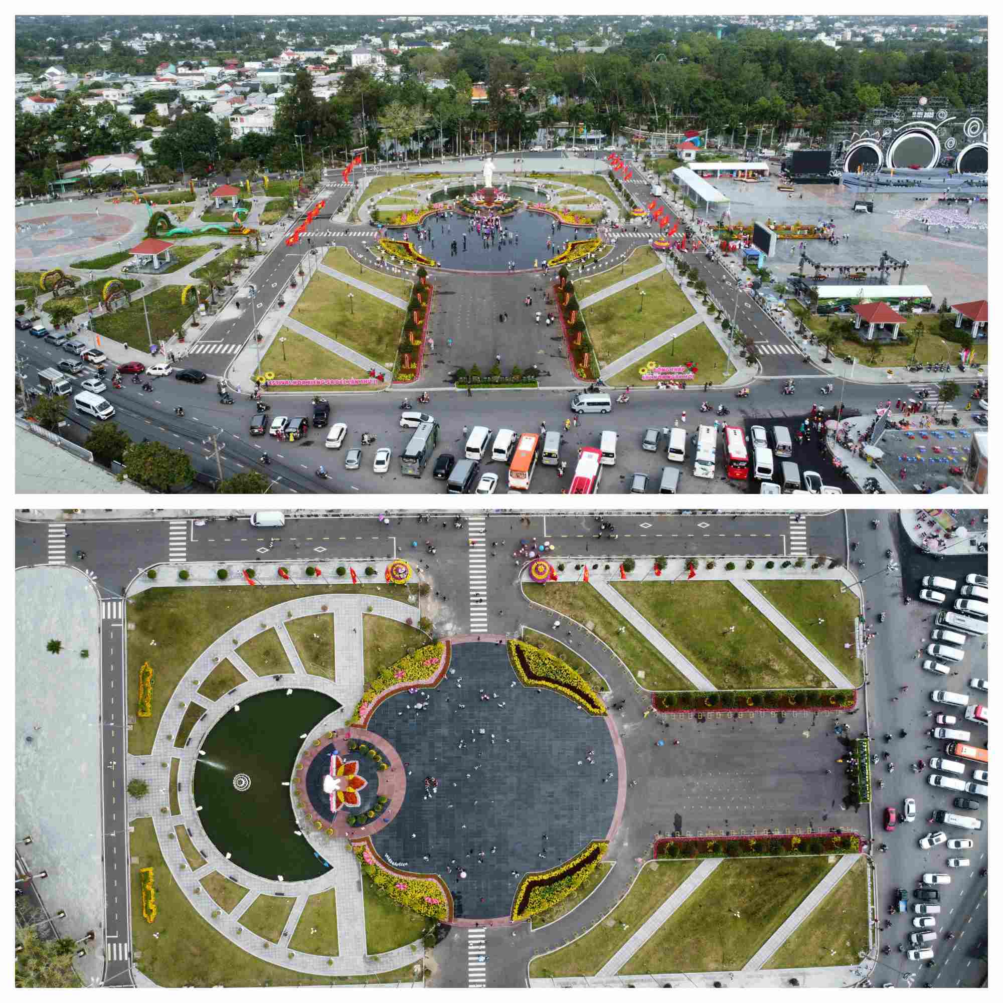 Toàn cảnh quảng trường Sa Đéc tại phường Sa Đéc, tỉnh Đồng Tháp nơi diễn ra đêm khai mạc vào tối 27-12.