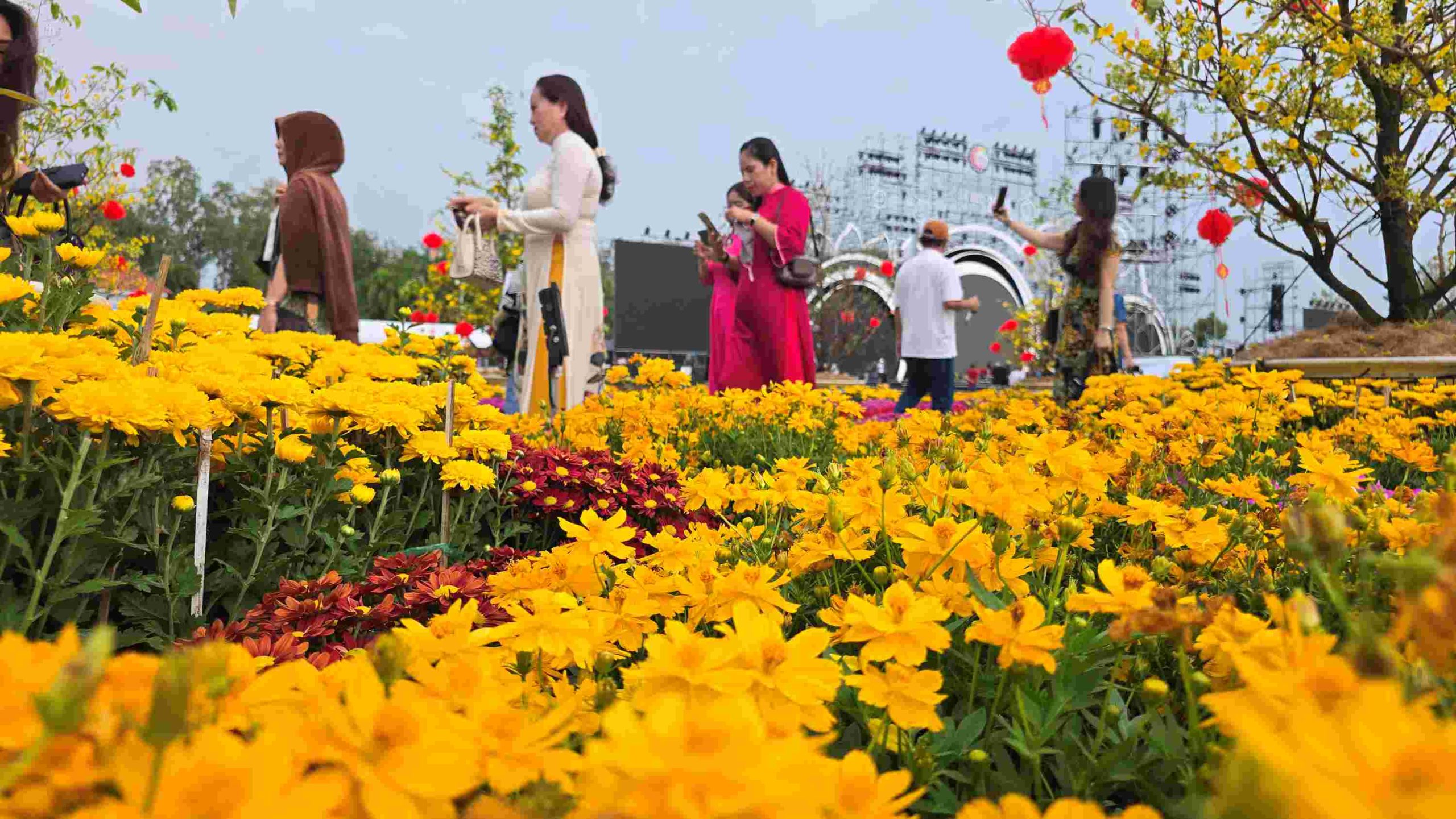 Hàng ngàn du khách từ các nơi kéo về quảng trường Sa Đéc để tham quan, chụp ảnh trước giờ khai mạc Festival hoa kiểng Sa Đéc lần thứ II năm 2025, từ ngày 27-12-2025 đến 4-1-2026.