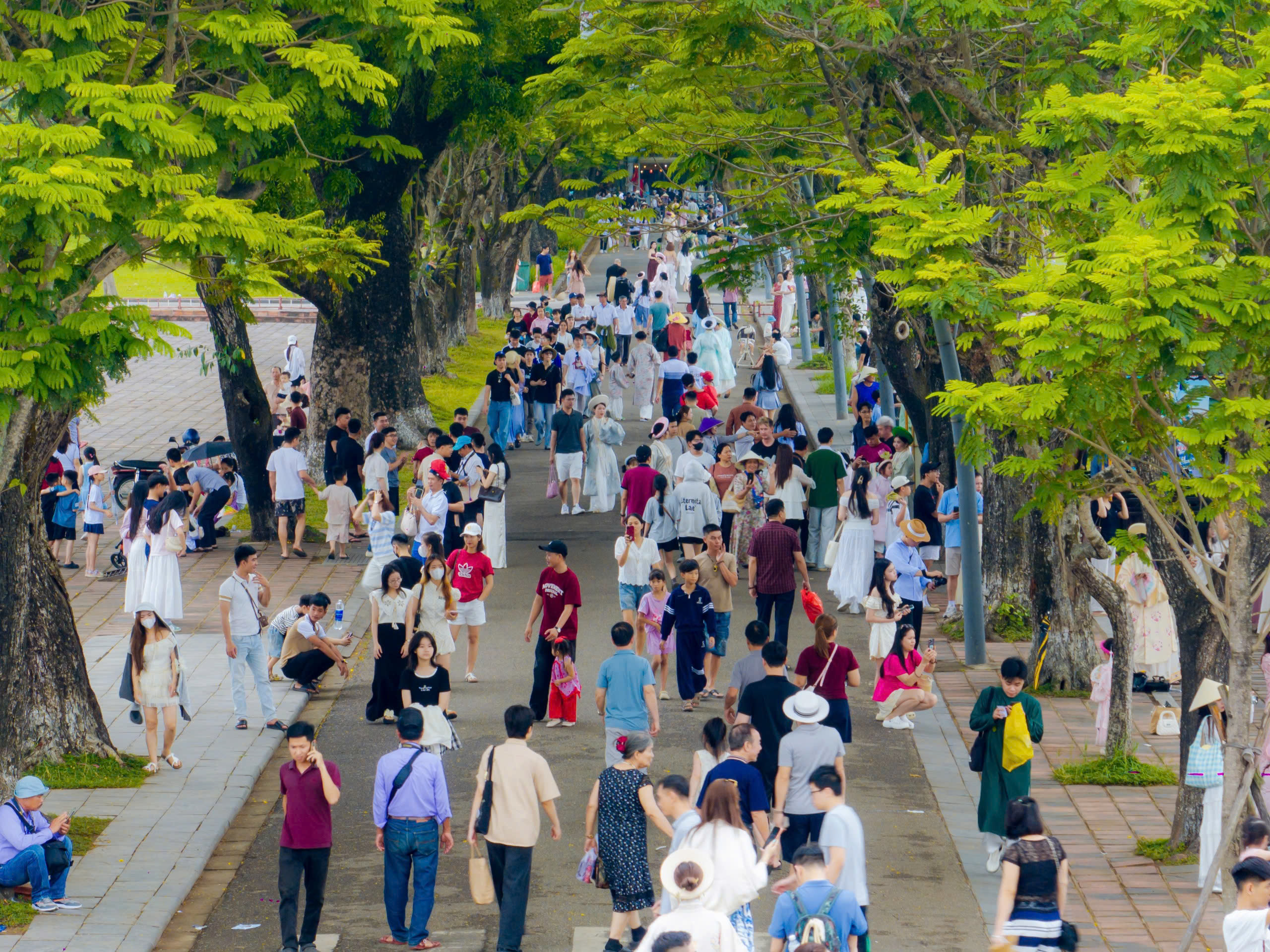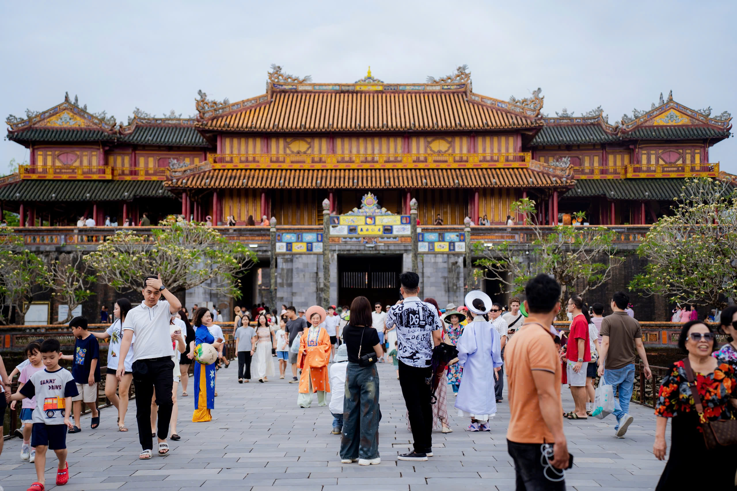 Ngày 30-4, du khách từ khắp nơi đã đổ về Đại nội Huế cùng các địa điểm thuộc Quần thể di tích Cố đô Huế để tham quan và chụp ảnh lưu niệm, tạo nên một bầu không khí vô cùng náo nhiệt trong ngày lễ lớn của đất nước.