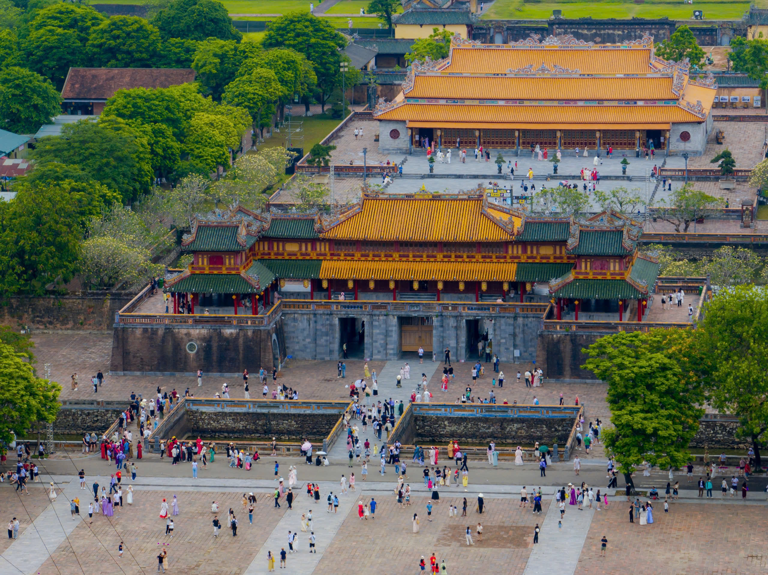 Khu vực trước Đại nội Huế tấp nập du khách đến mua vé.
