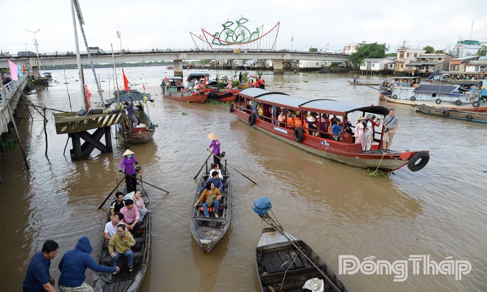 Hoạt động tái hiện Chợ nổi Cái Bè thu hút đông đảo người dân, du khách đến trải nghiệm.