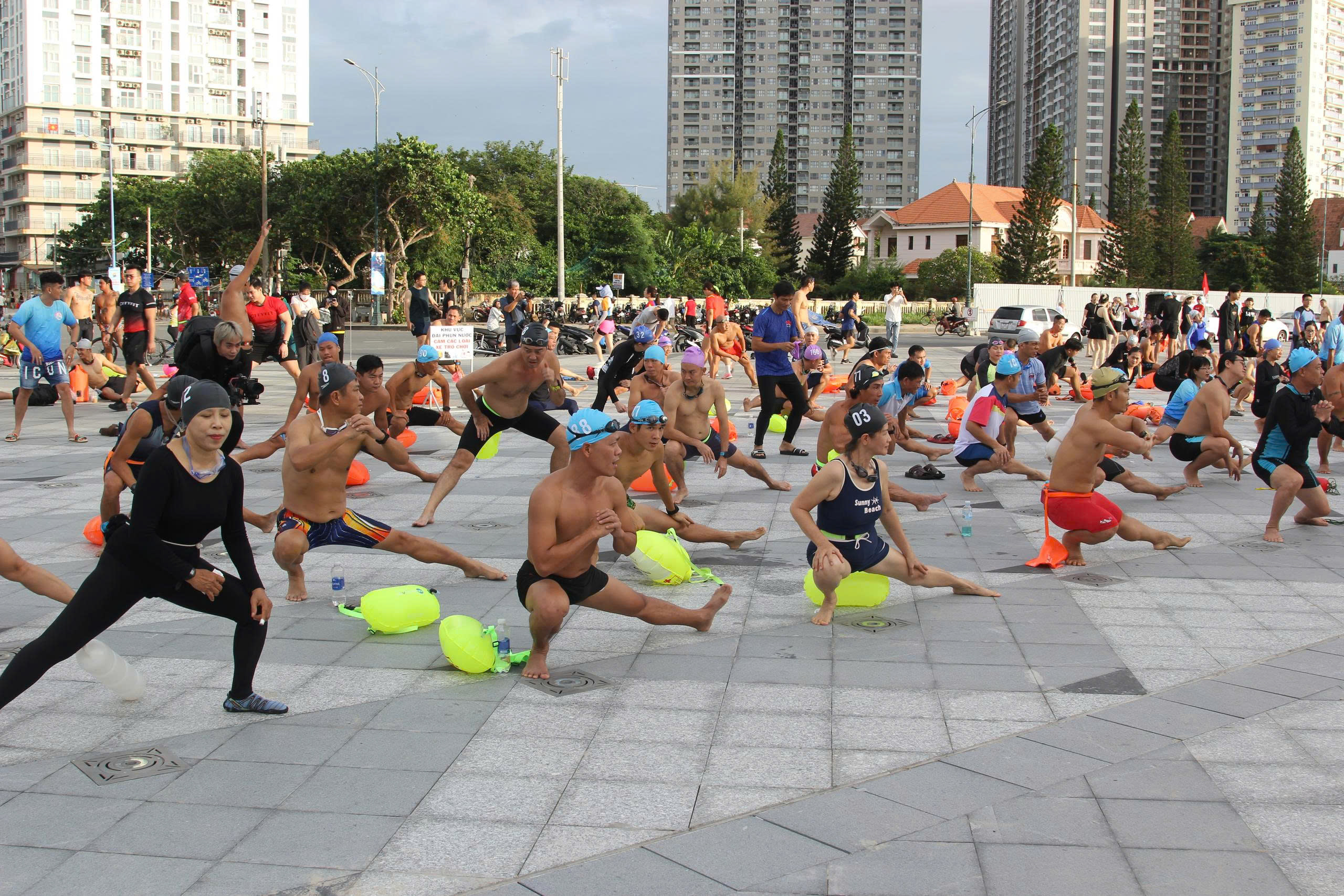 170 vận động viên khởi động cho cuộc thi bơi biển Vũng Tàu mở rộng. Ảnh: QUANG VŨ