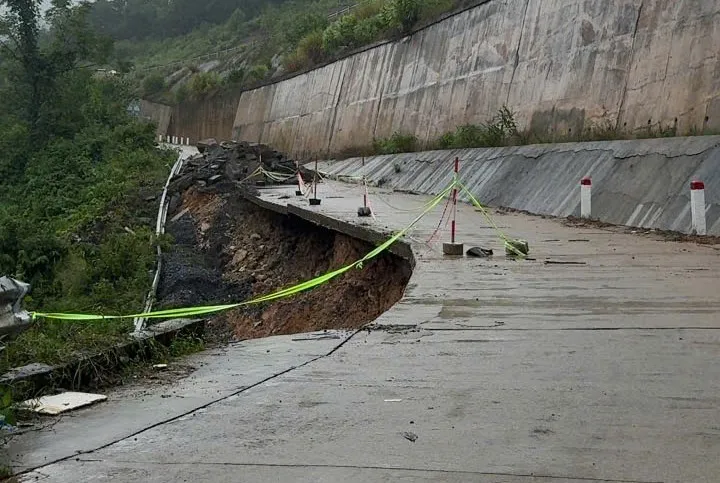 Đường tỉnh 601 bị sạt lở, hiện đơn vị quản lý cầu đường đã rào chắn không cho xe cộ di chuyển. Ảnh: SXD