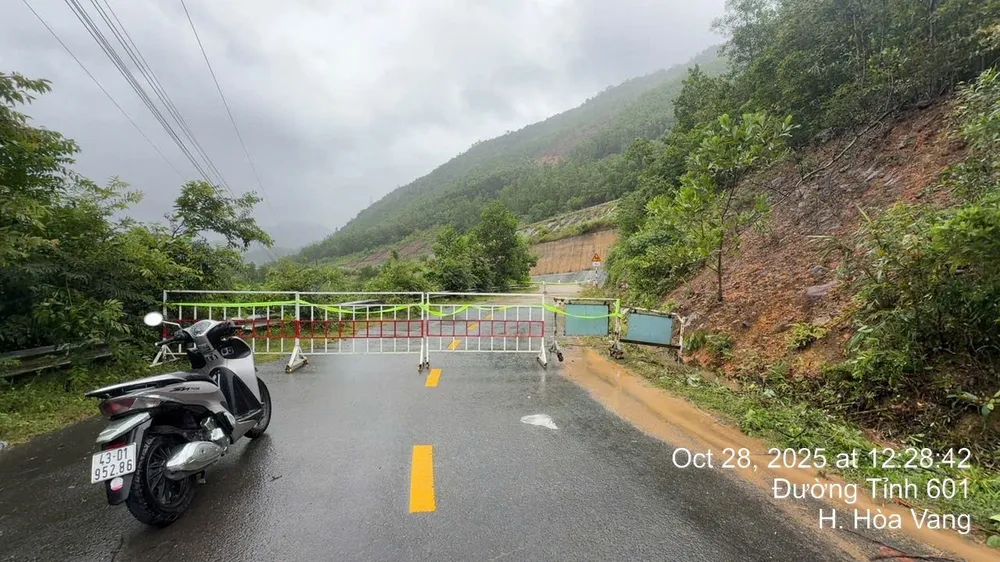 Đoạn đường tỉnh 601 ngay bên dưới khu vực này cũng bị sạt lở xuống bờ sông. Công ty Quản lý cầu đường Đà Nẵng đã rào chắn hai bên đường, không cho phương tiện qua lại.