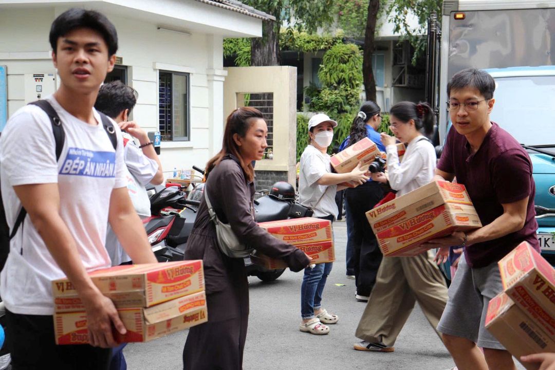 Nhà Văn hóa Thanh niên TPHCM cũng là một trong những điểm nhận hàng cứu trợ trên địa bàn thành phố. Trong ngày 22-11, dòng người mang theo mì gói, nước suối, quần áo và các vật dụng cá nhân liên tục đổ về.