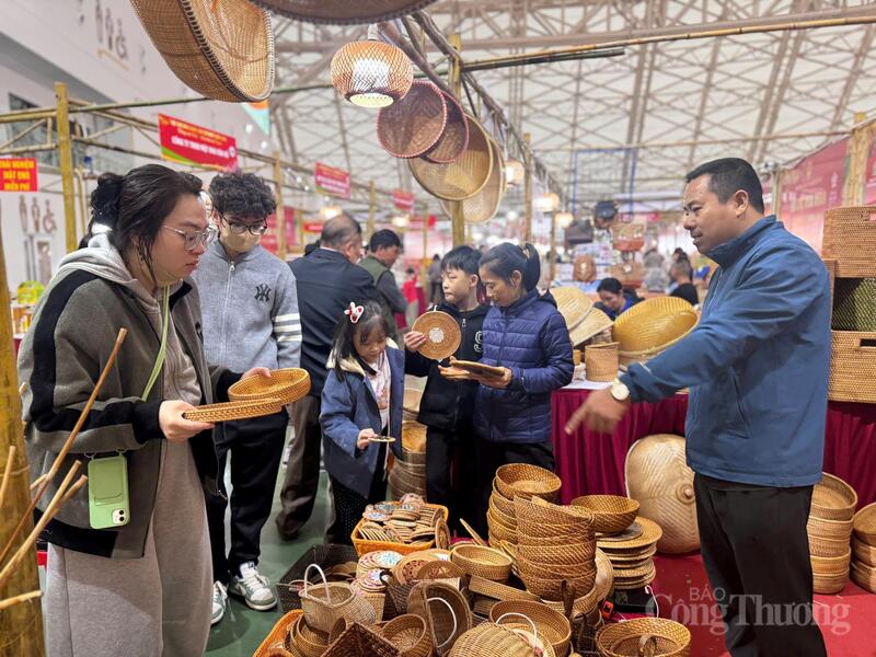 Gian hàng mây tre đan cũng được đông đảo người tiêu dùng, khách tham quan ghé thăm...