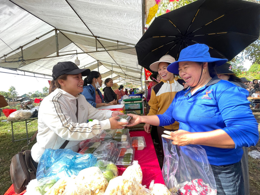 Dịp này, Ban tổ chức còn bố trí trên 20 gian hàng bày bán các sản phẩm OCOP, sản vật địa phương, các loại bánh trái, rau củ và ẩm thực truyền thống.
