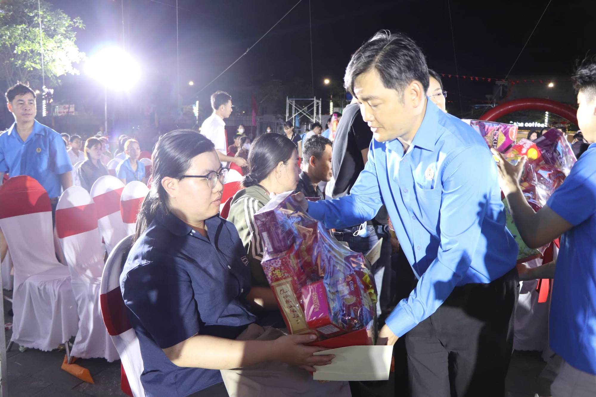 Những món quà ý nghĩa lần lượt trao đến tay công nhân.