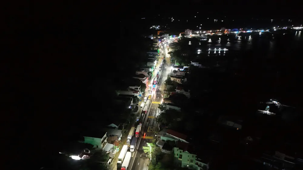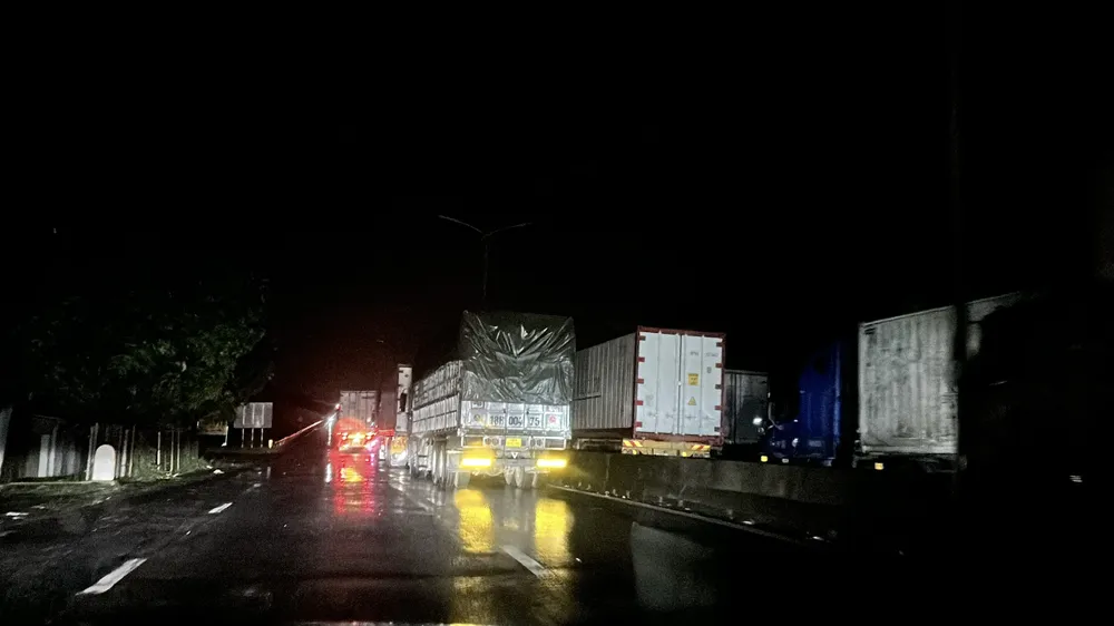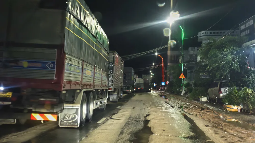 Chiều từ phía nam ra hầu như không thể di chuyển do các xe tải, xe đầu kéo chắn lại.