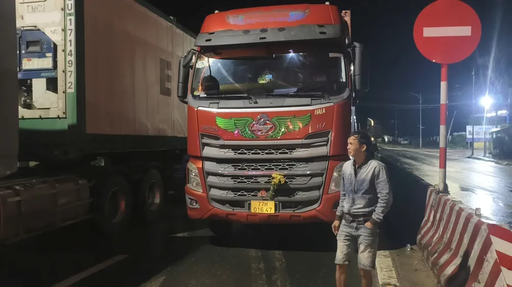 Anh Nguyễn Quang Thịnh, tài xế xe tải mắc kẹt trên quốc lộ 1 - đoạn qua xã Tuy An Nam cho hay trưa nay anh chở hàng của công ty từ TP Đà Nẵng đi Đà Lạt.