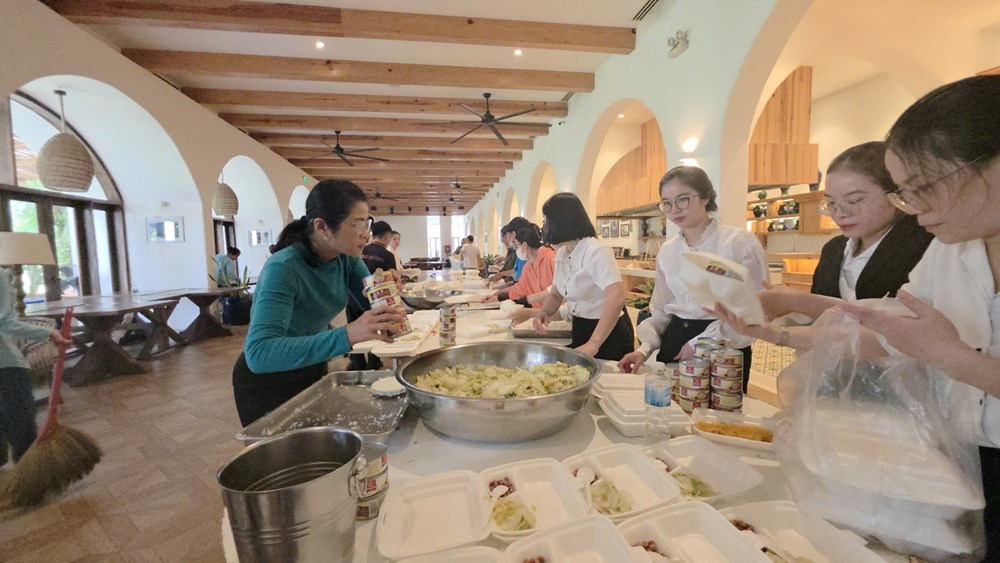 Thực phẩm được chọn lựa kỹ, bảo đảm dinh dưỡng và an toàn. Sau khi chế biến, các suất cơm được lực lượng chức năng địa phương vận chuyển đến từng khu vực bị ngập sâu, để người dân không ai bị thiếu bữa trong những ngày khó khăn.