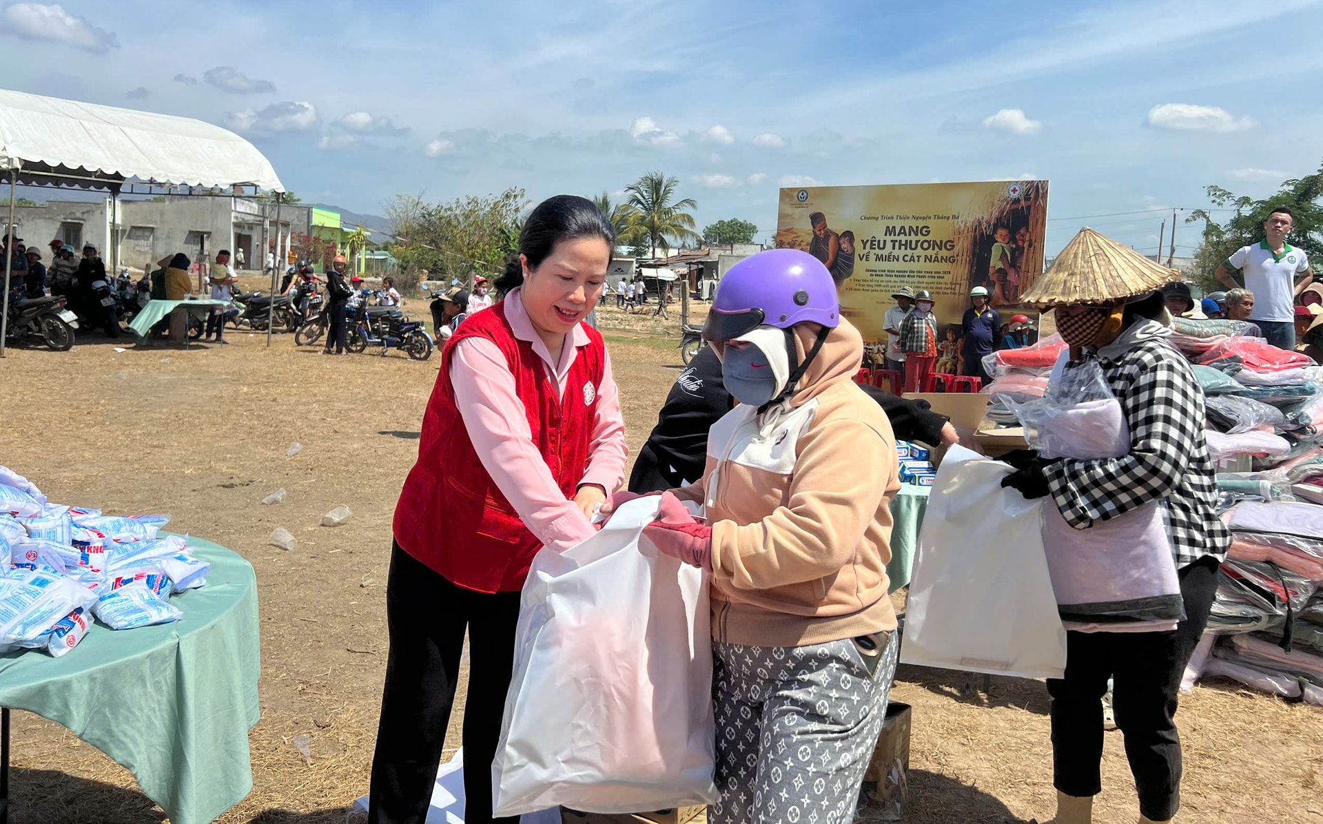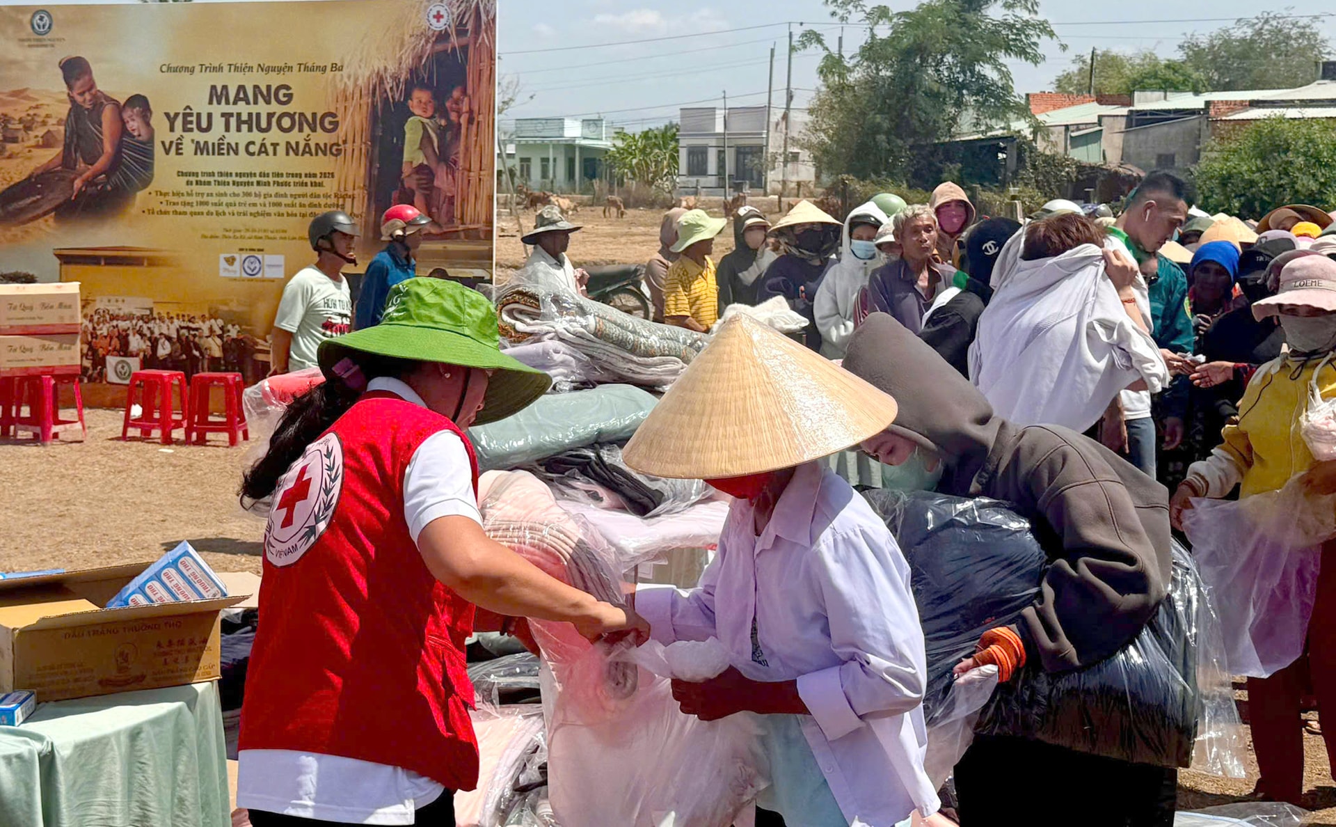 Hàng ngàn người dân đến với Chương trình Mang yêu thương về miền cát trắng tại thôn Ku Kê, xã Hàm Thuận