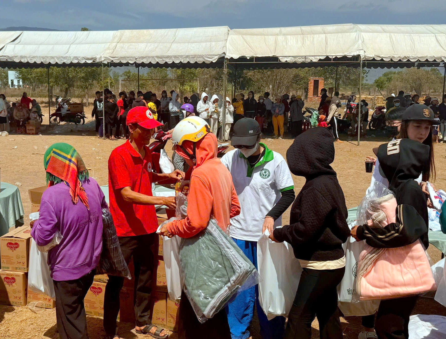 Đoàn thiện nguyện còn trao tặng 1.000 suất quà gồm bánh, kẹo, nước uống... cho trẻ em và 1.000 suất ăn nhanh cho người dân đến nhận quà.