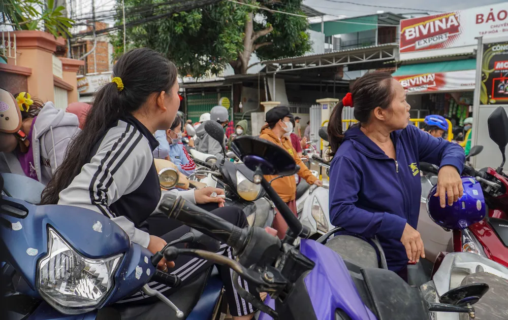 Do số lượng xe quá nhiều, hàng trăm người đến sau vẫn kiên nhẫn chờ đợi đến lượt.