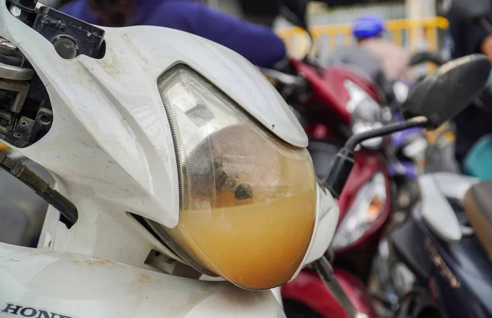 Dấu tích còn hằn trên chiếc xe máy sau trận lụt lịch sử.
