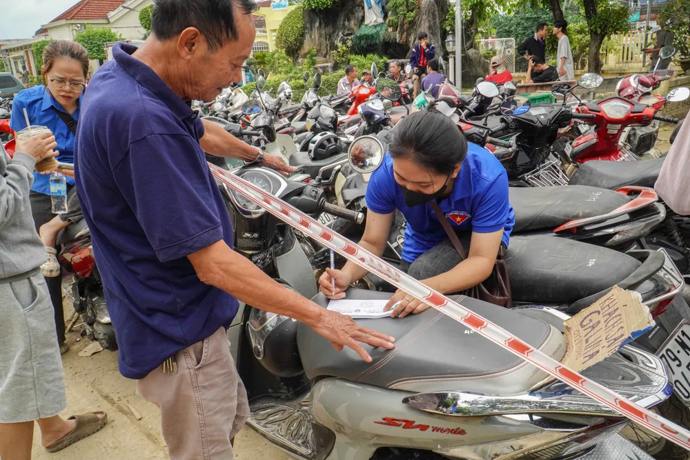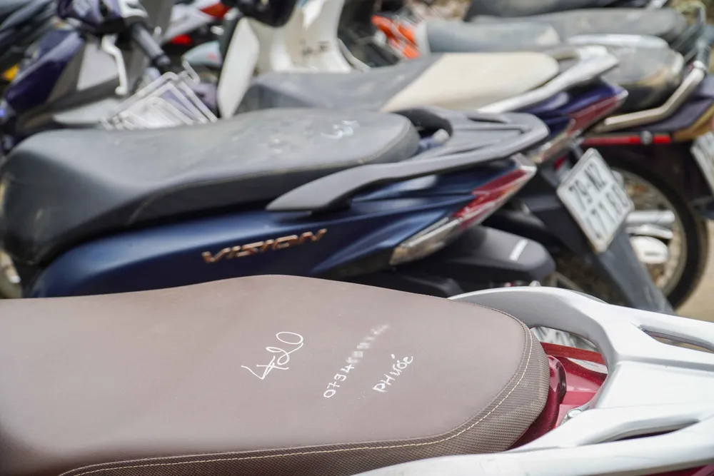 Do quá nhiều xe nên các tình nguyện viên phải đánh số, ghi tên, ghi số điện thoại để hẹn khi nào sửa xong gọi chủ xe đến lấy.