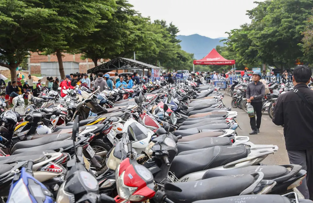 Từ sáng sớm, người dân đã đưa xe máy đến để nhờ thợ sửa chữa. Số lượng xe ngày một nhiều.
