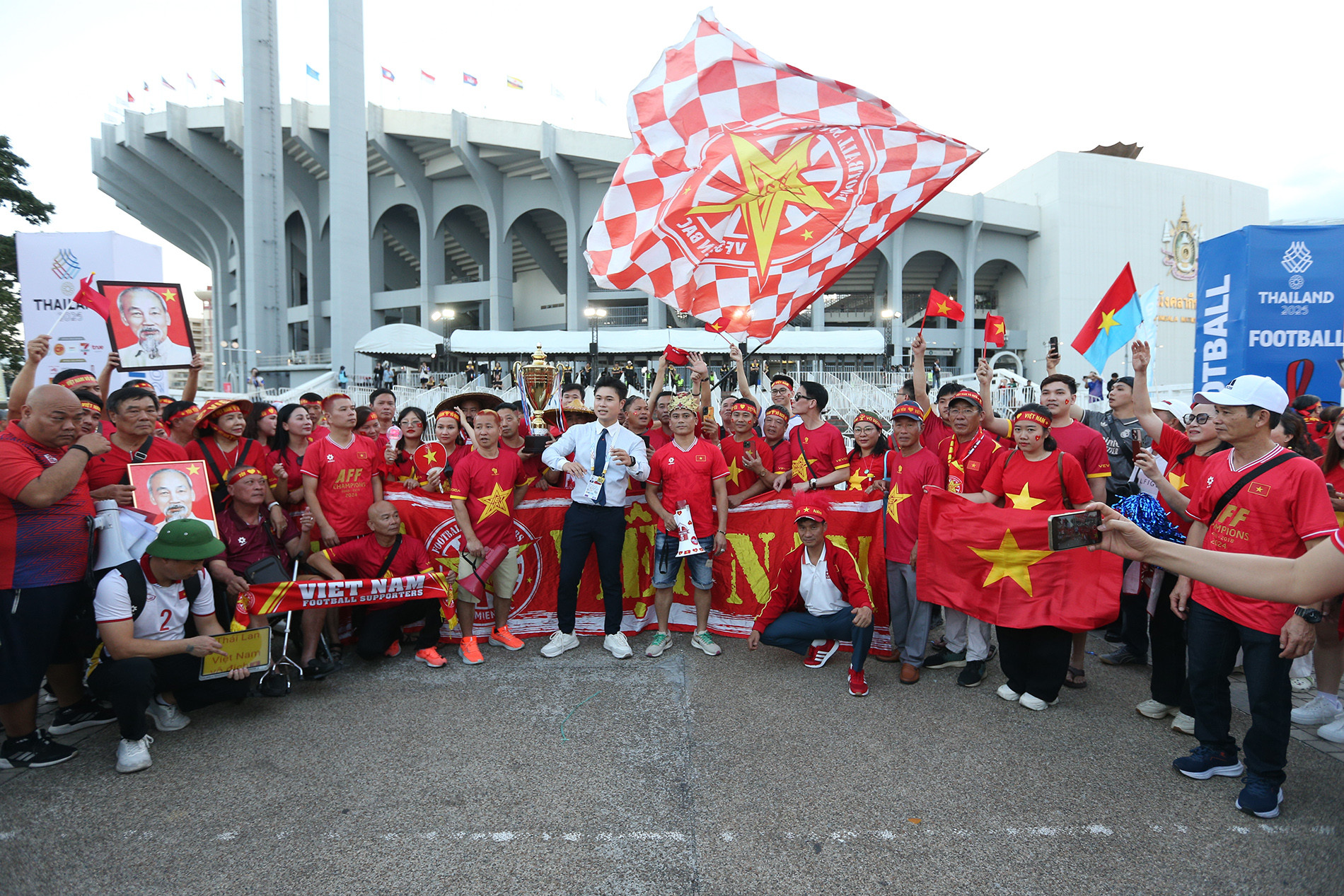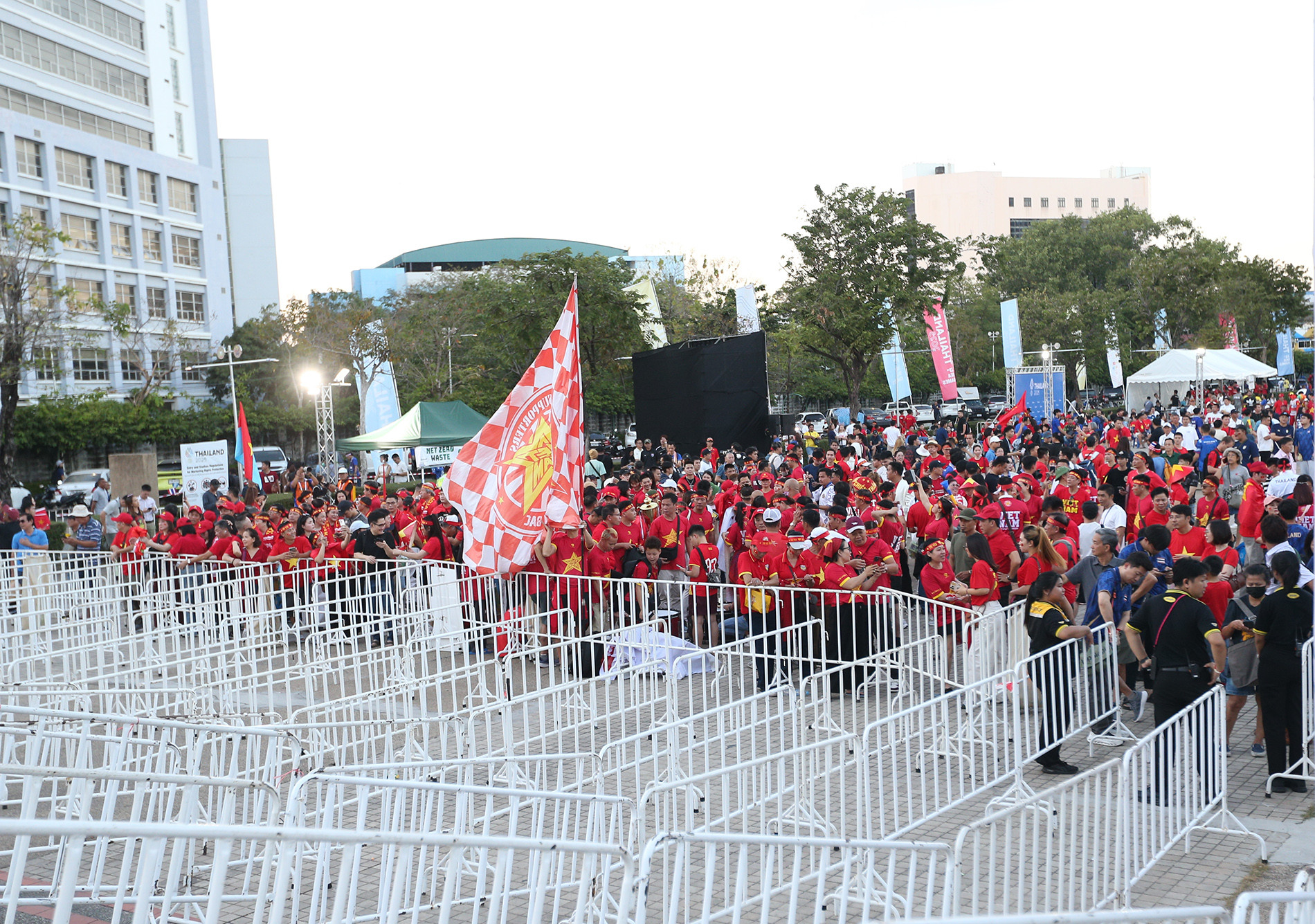 Trước giờ bóng lăn 4-5 tiếng đồng hồ, hàng nghìn CĐV Việt Nam đã tới sân Rajamangala để xếp hàng chờ giờ mở cửa.