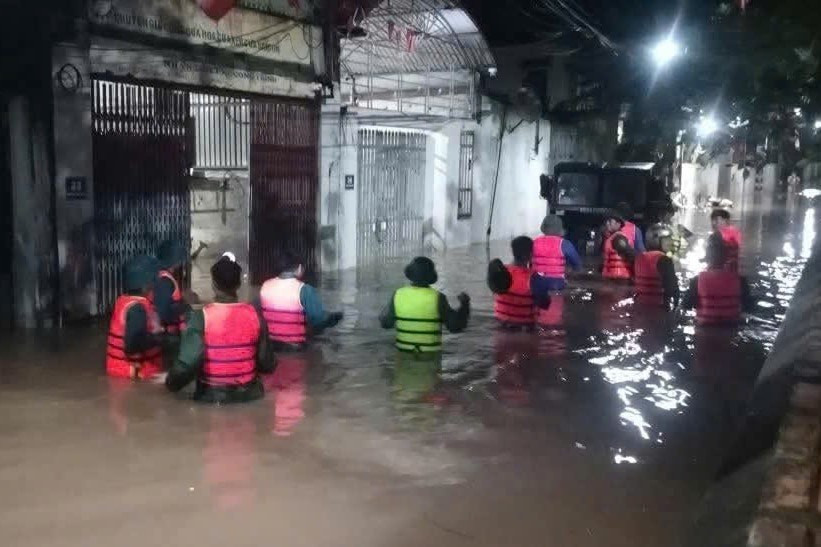Tại xã Trung Giã, mưa lớn đã làm nhiều tuyến đường ngõ xóm bị ngập cục bộ. Toàn xã có 637 hộ dân với hơn 2.500 nhân khẩu bị cô lập tạm thời. Ban Chỉ huy phòng thủ dân sự xã đã phối hợp với các lực lượng chức năng tổ chức hỗ trợ, vận động người dân di chuyển đến nơi an toàn, đồng thời khơi thông dòng chảy, chăng dây cảnh báo, đặt biển báo tại các vị trí ngập sâu để bảo đảm an toàn giao thông.