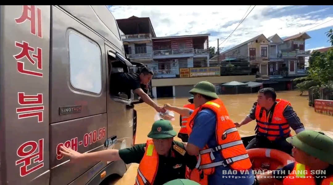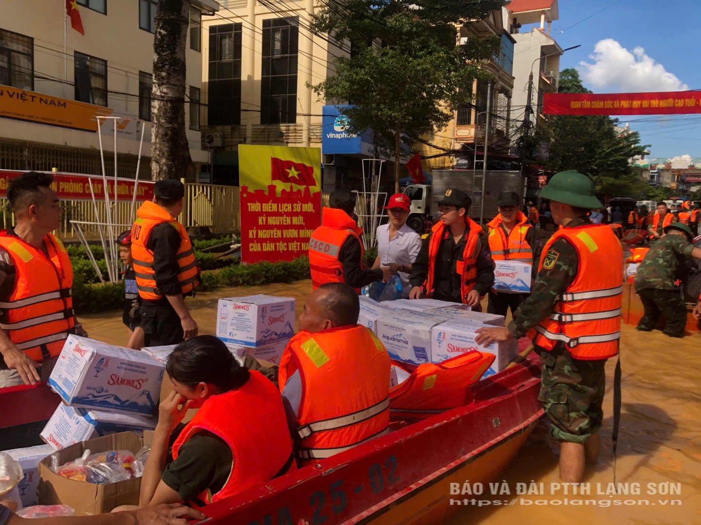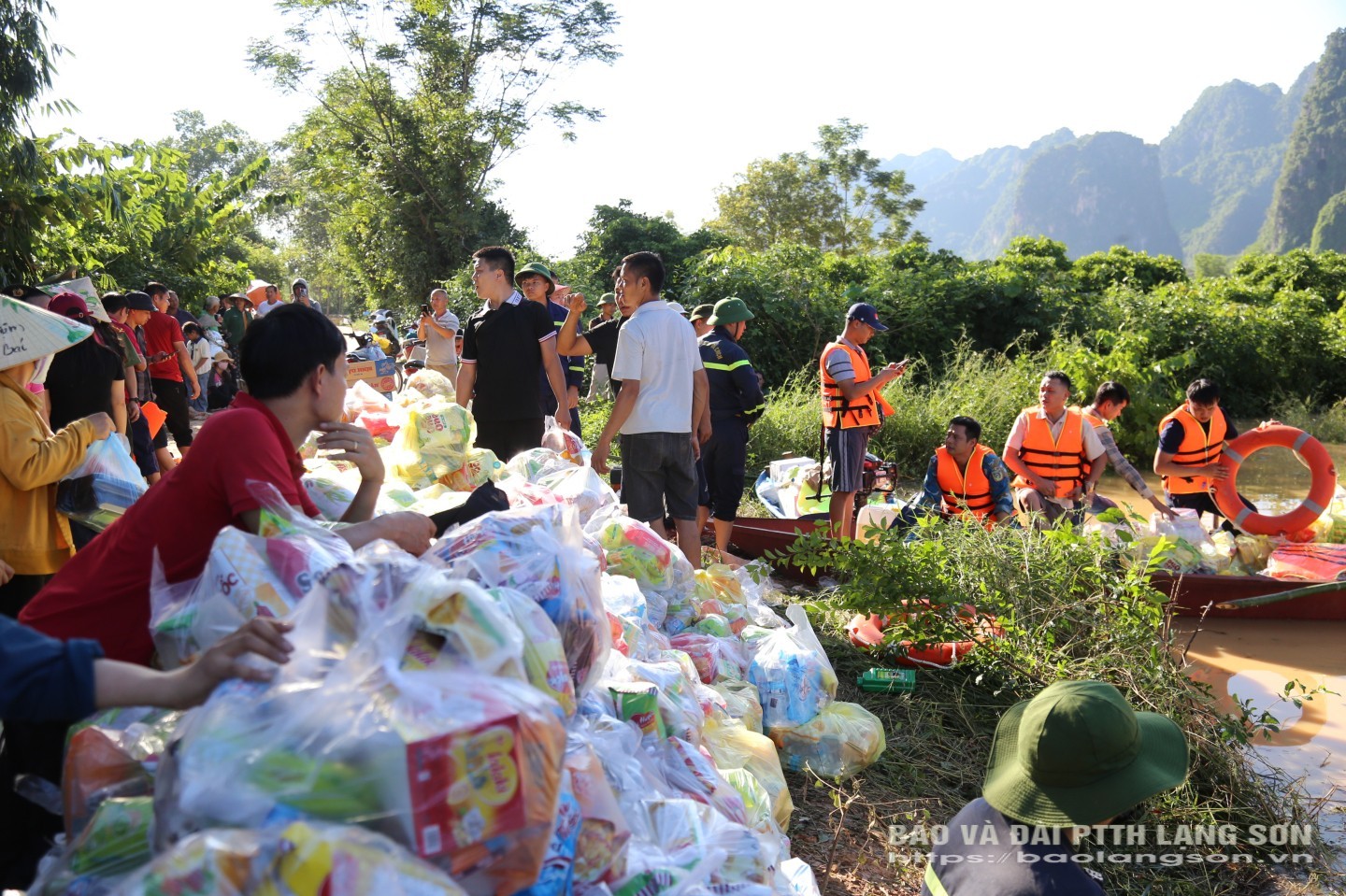 Các tổ chức, đoàn thể trên địa bàn tỉnh hỗ trợ thực phẩm đến khu vực các xã thuộc huyện Hữu Lũng cũ bị ngập lụt để hỗ trợ người dân