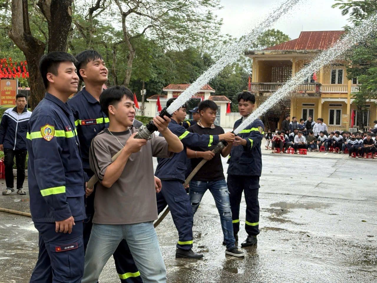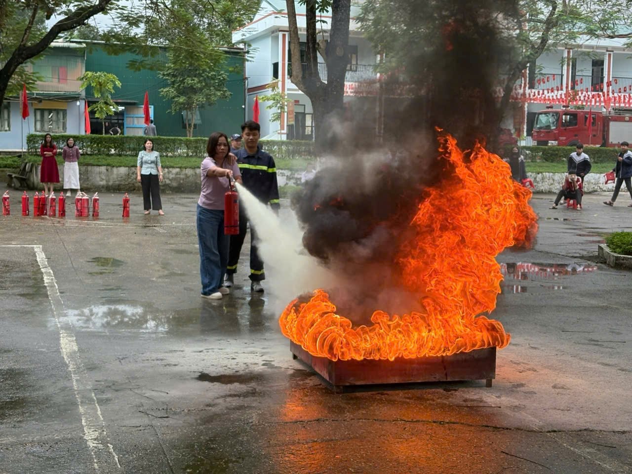 Đặc biệt, phần thực hành dập tắt đám cháy bằng bình chữa cháy cầm tay đã thu hút sự hào hứng tột độ, nhất là từ các em học sinh. Thay vì hình dung qua lời giảng, việc được trực tiếp cầm bình, phun khống chế ngọn lửa đã mang lại trải nghiệm thực tế và cảm giác tự tin tức thì.