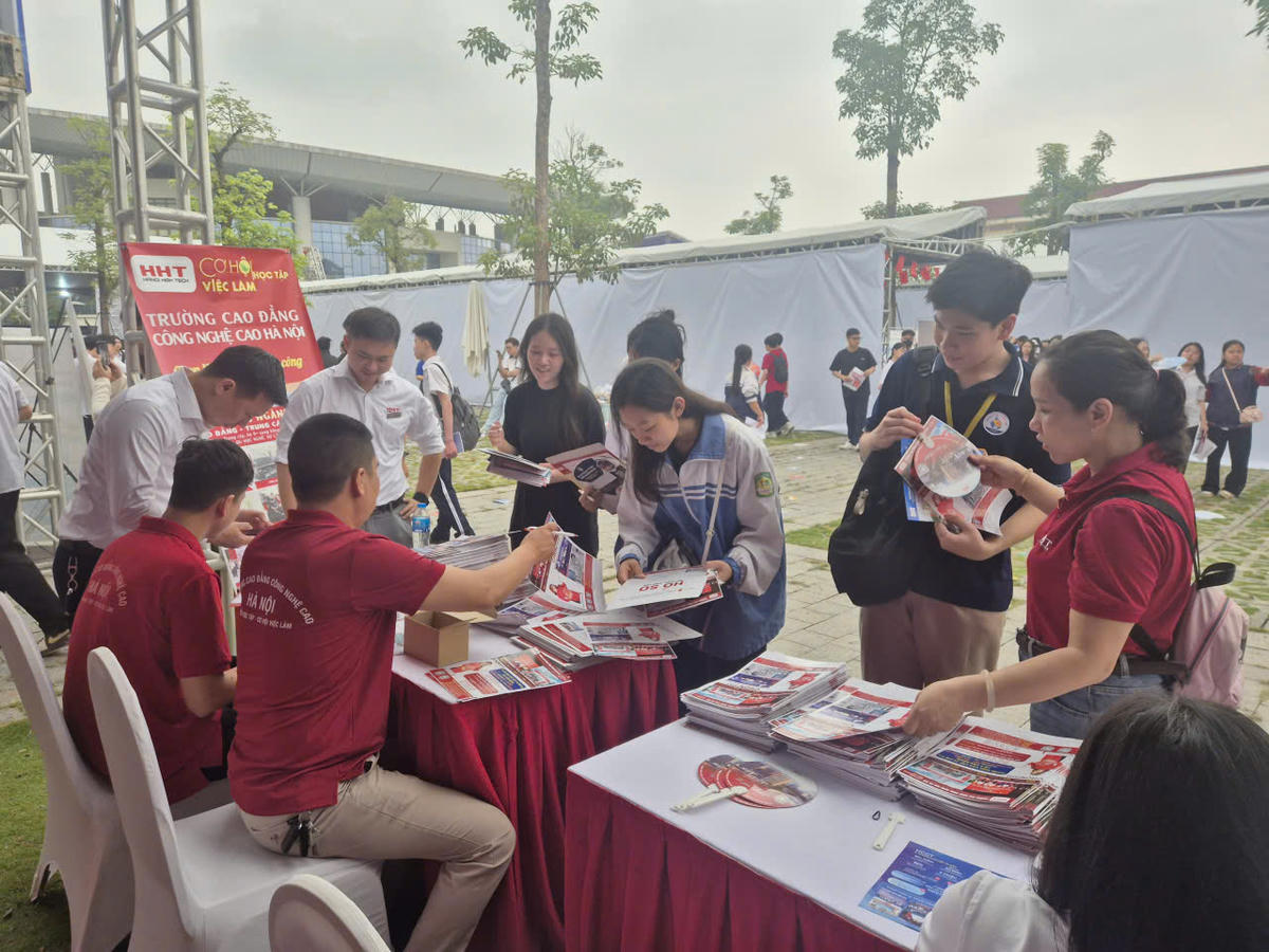 Học sinh, sinh viên tìm hiểu cơ hội học tập tại các cơ sở giáo dục nghề nghiệp.