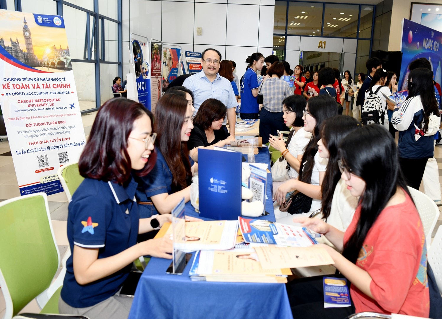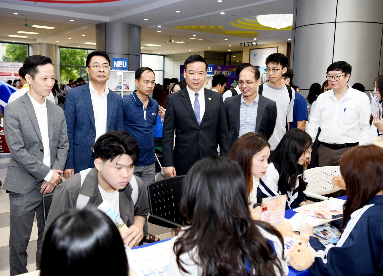PGS.TS Bùi Huy Nhượng, Giám đốc Đại học Kinh tế Quốc dân thăm các gian tư vấn tại chương trình “Một ngày là sinh viên Kinh tế Quốc dân”