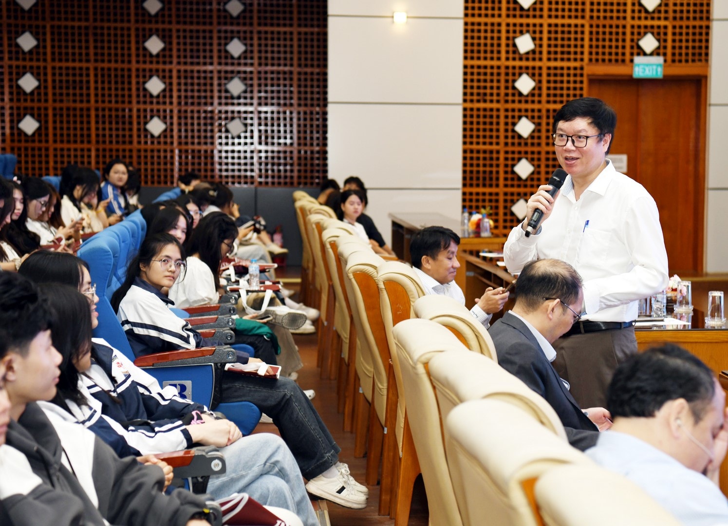 “Sau này khi cầm trên tay tấm bằng đại học, đó không phải là “hộ chiếu” giúp các em trong suốt cuộc đời. Thế giới thay đổi, công nghệ thay đổi, ngành nghề thay đổi, các em phải biết thay đổi để thích ứng với môi trường, sự biến đổi của thế giới nghề nghiệp”, ông nói.