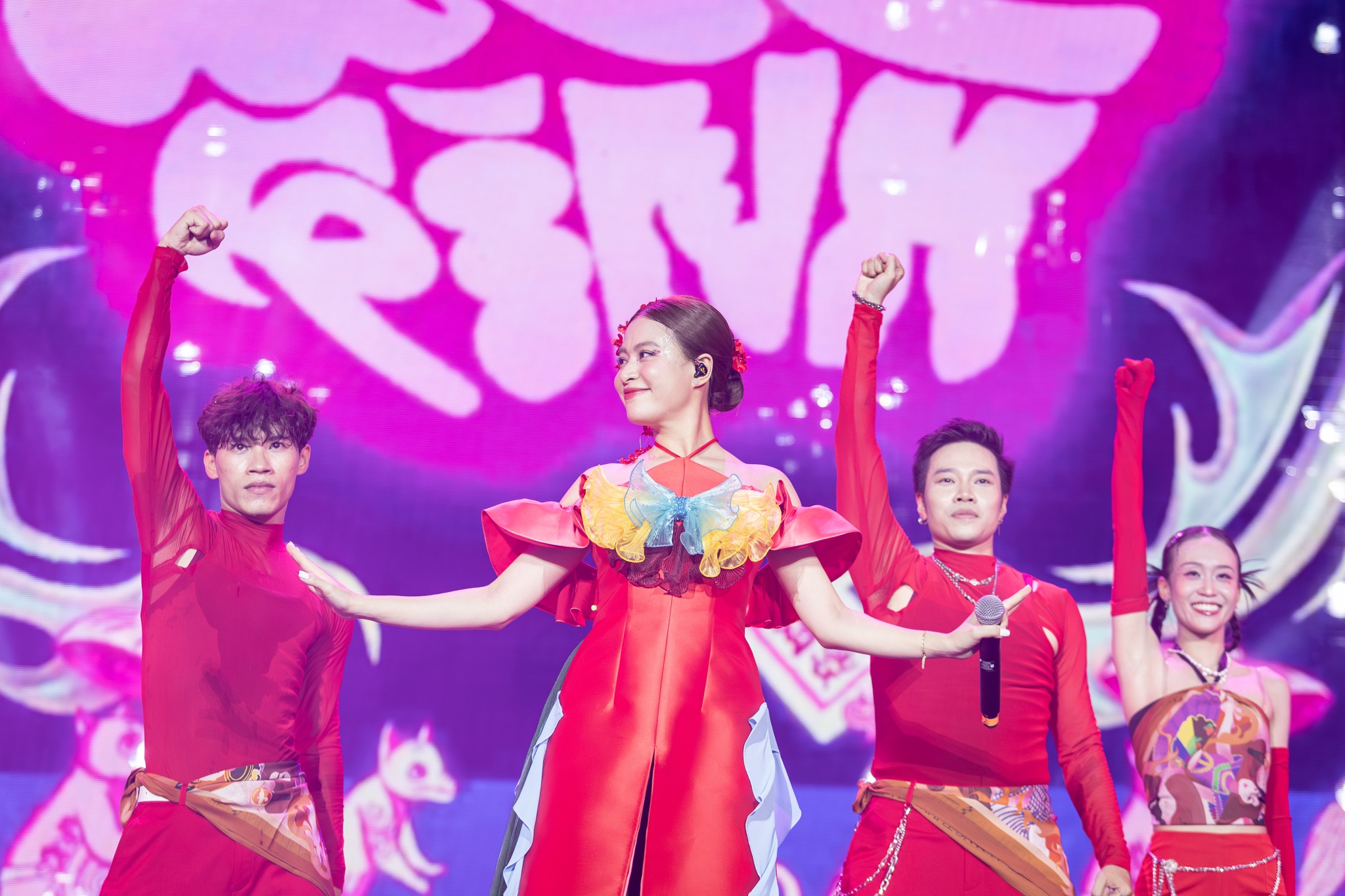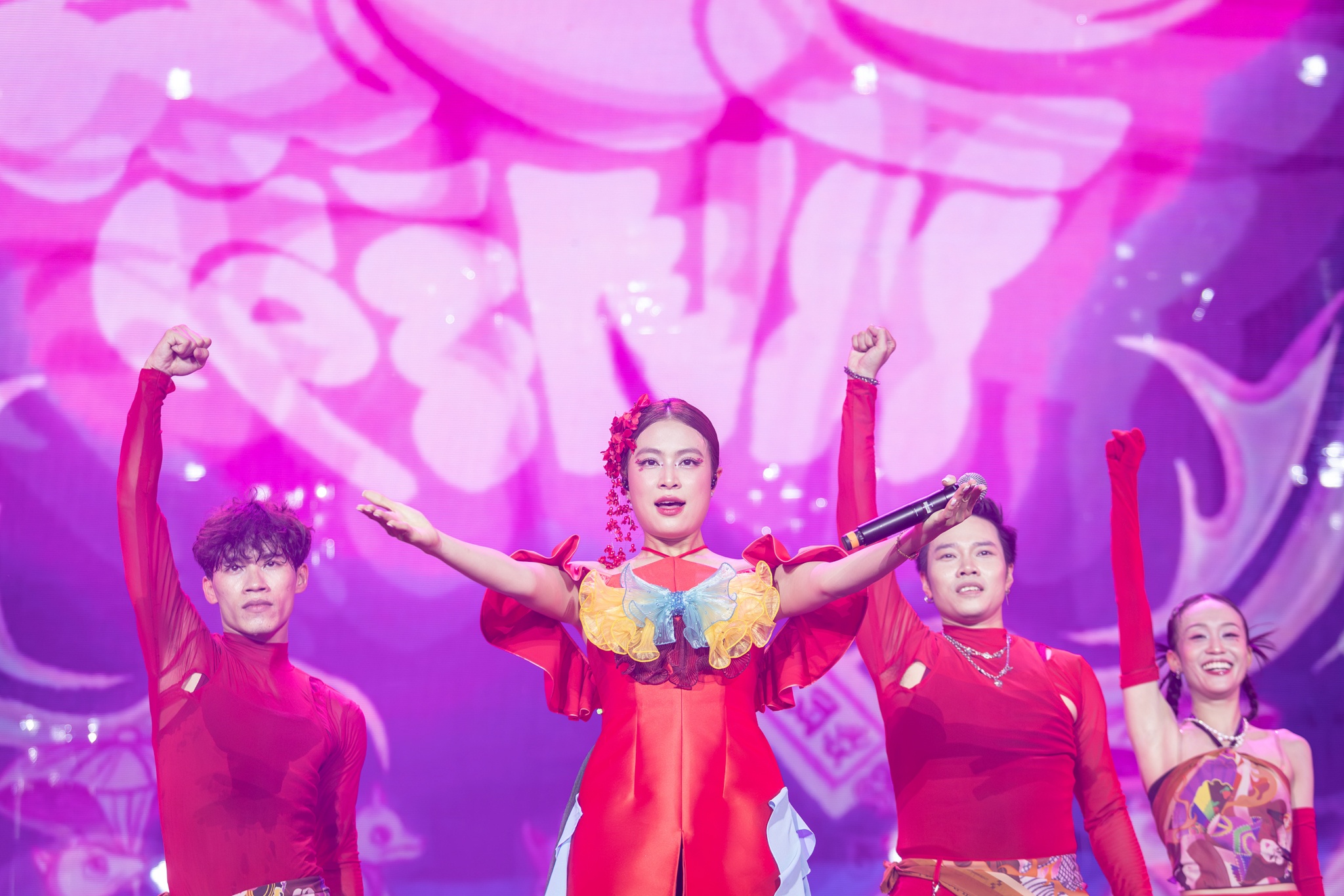 Với thông điệp hướng về nguồn cội, Hò Dô 2025 bắt đầu với màn trình diễn đậm đà chất liệu văn hóa truyền thống của Phương Mỹ Chi và DTAP. Loạt ca khúc hit của ngôi sao sinh năm 2003 thời gian qua như Vũ trụ cò bay, Bóng phù hoa, Ếch ngồi đáy giếng, Gối gấm... lần lượt vang lên.