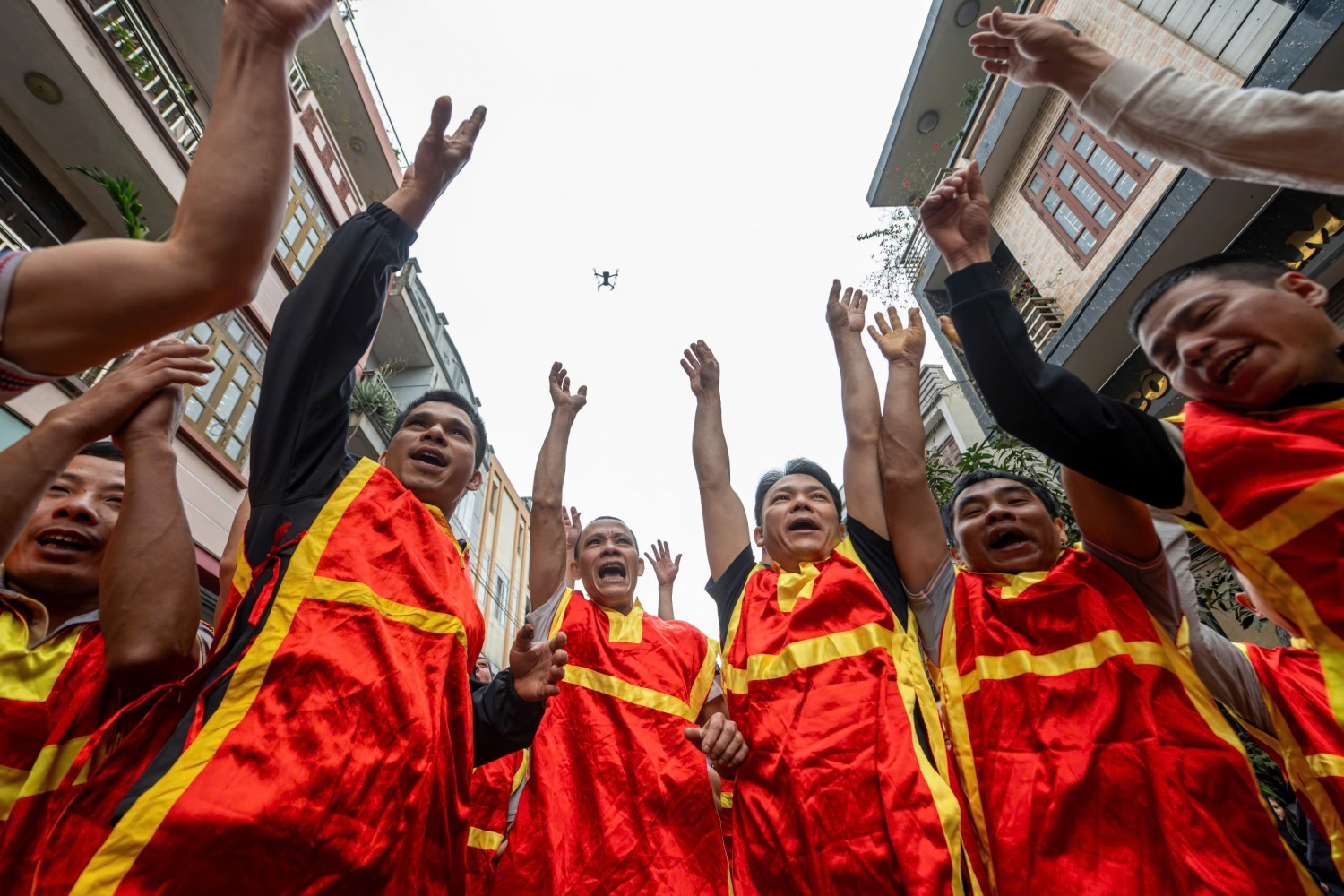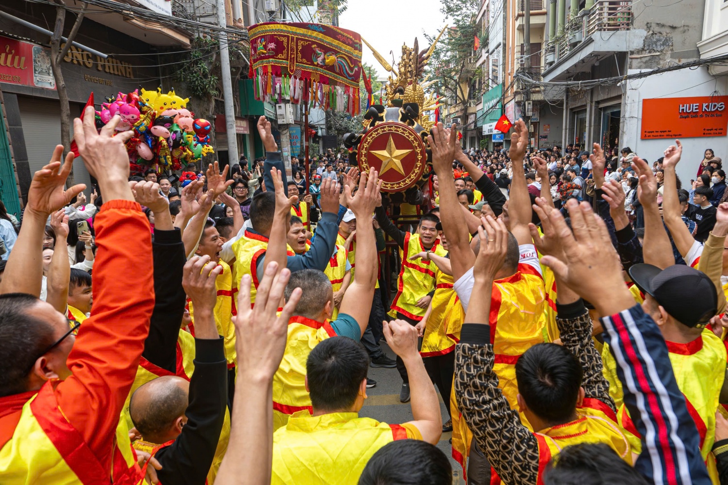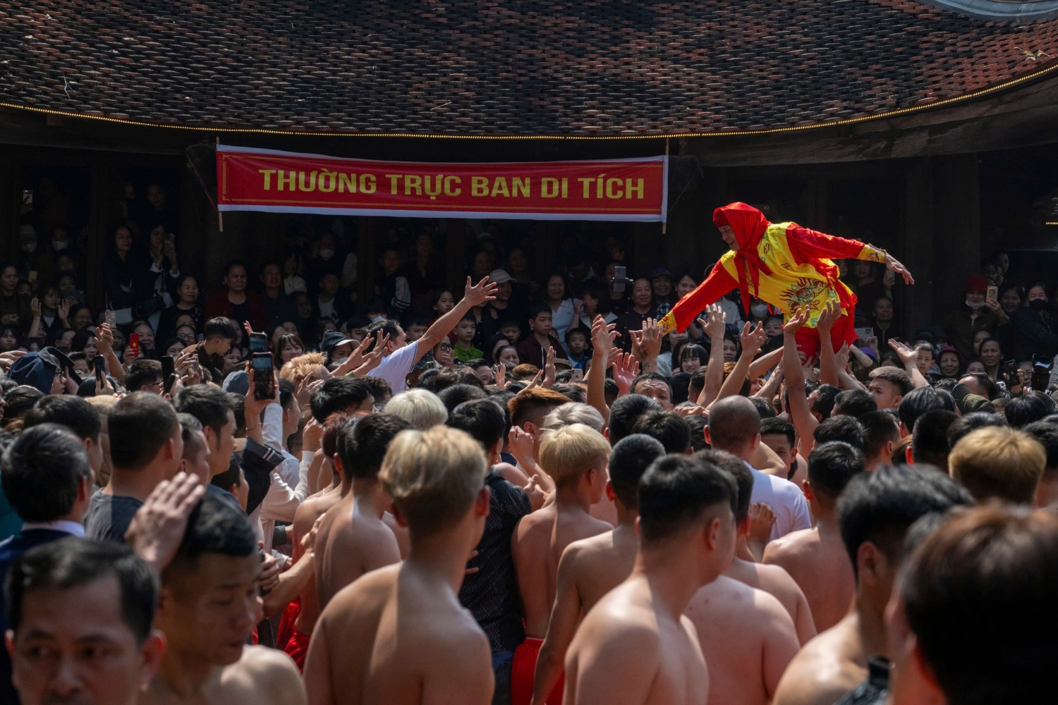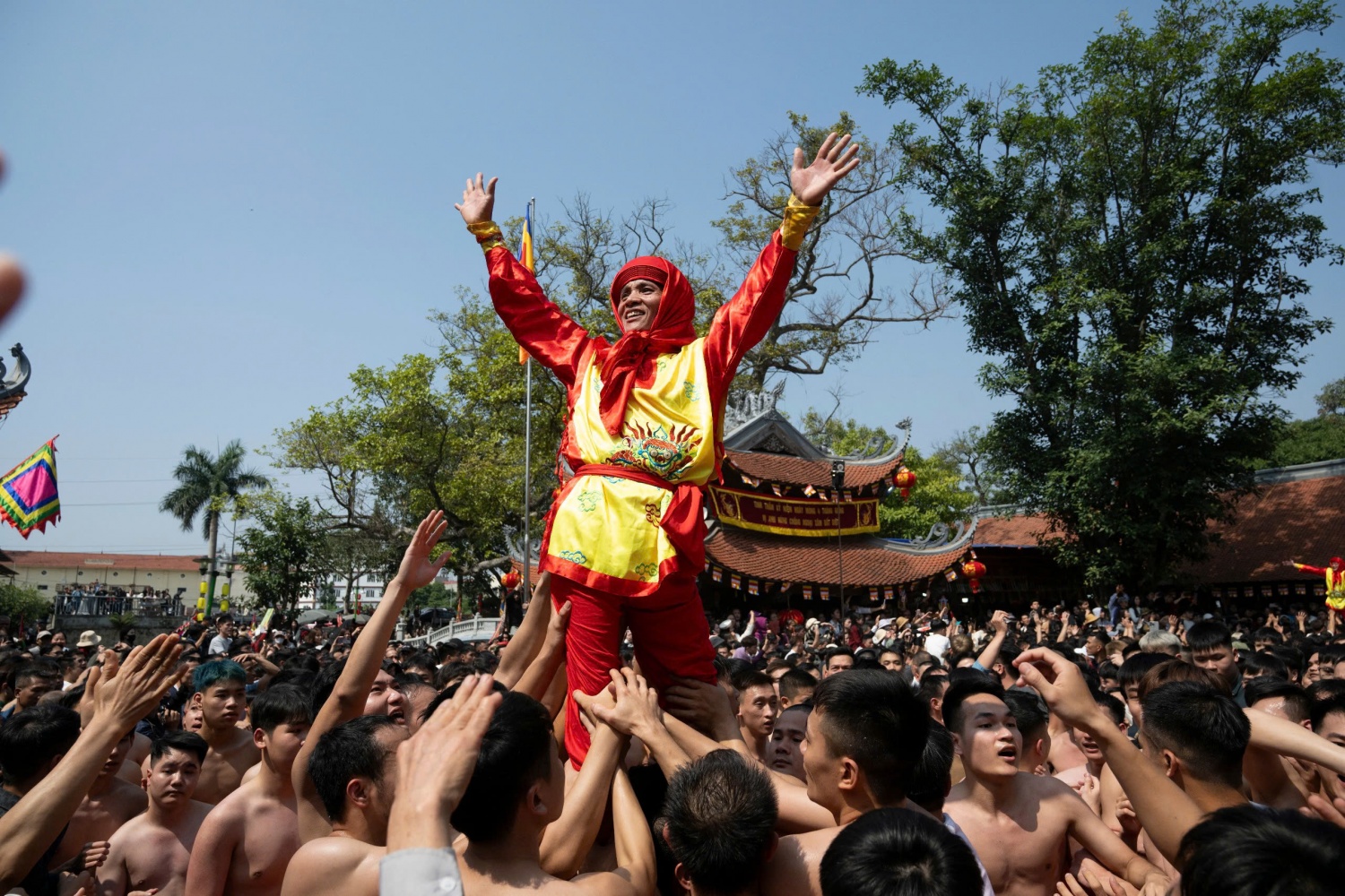 Cảnh lễ chạy quan đám tại sân đình làng Đồng Kỵ.