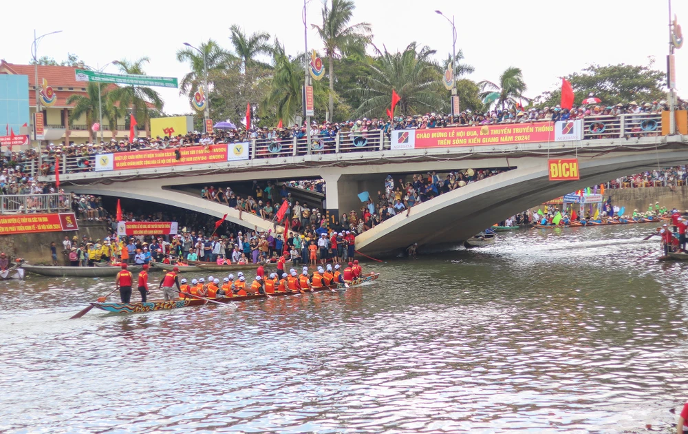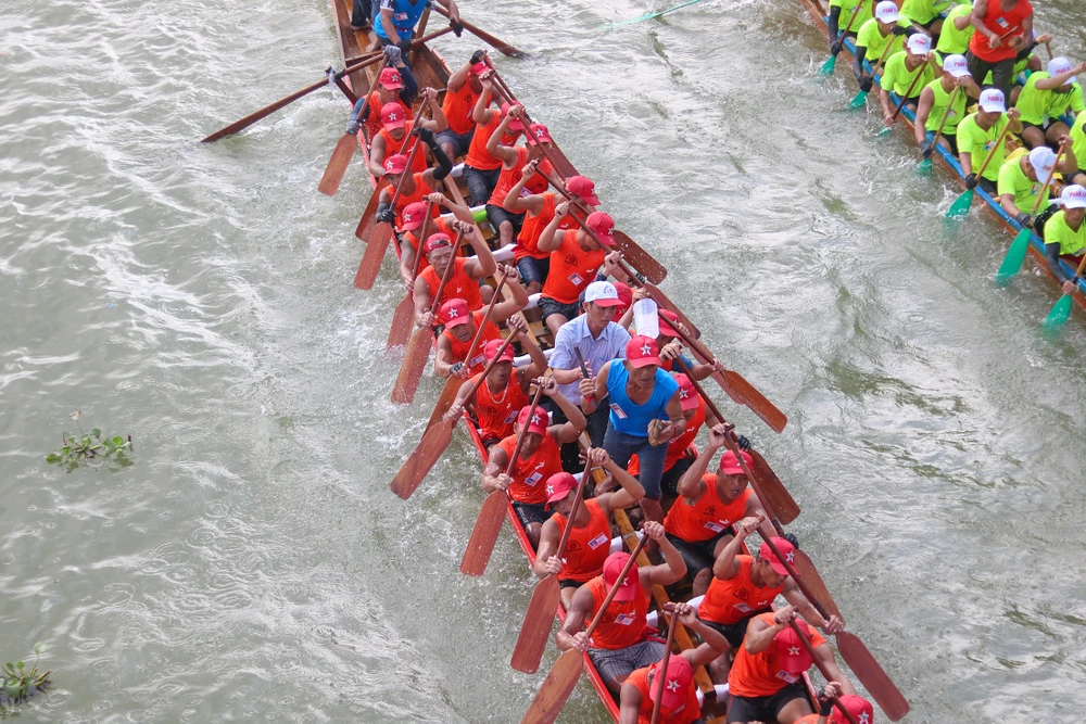 Giải đua bơi thuyền truyền thống trên sông Kiến Giang diễn ra trong không khí sôi nổi, đoàn kết, thân ái và đầy tinh thần văn hóa thể thao. Ảnh: B.THIÊN