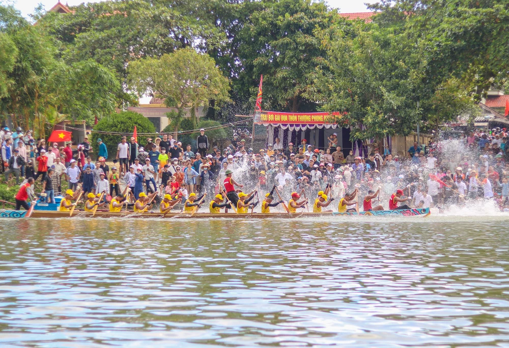 Trong tiến trình phát triển, Lệ Thủy là quê hương có bề dày giá trị văn hóa vật chất, tinh thần độc đáo, điển hình là lễ hội bơi, đua thuyền truyền thống hằng năm trên sông Kiến Giang. Ảnh: B. THIÊN